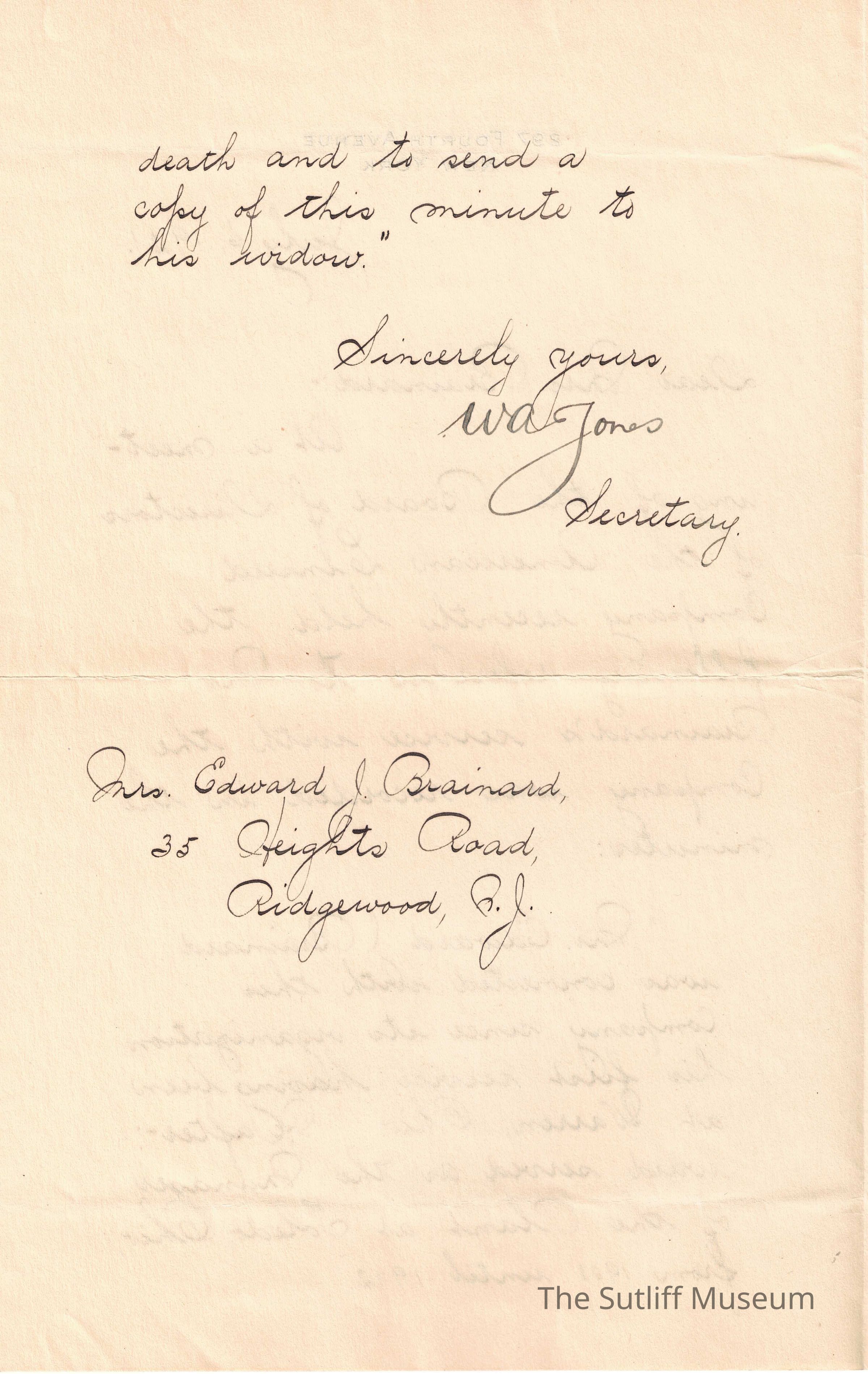 Letter to Mrs. Edward J. BrainardEntry/Object ID