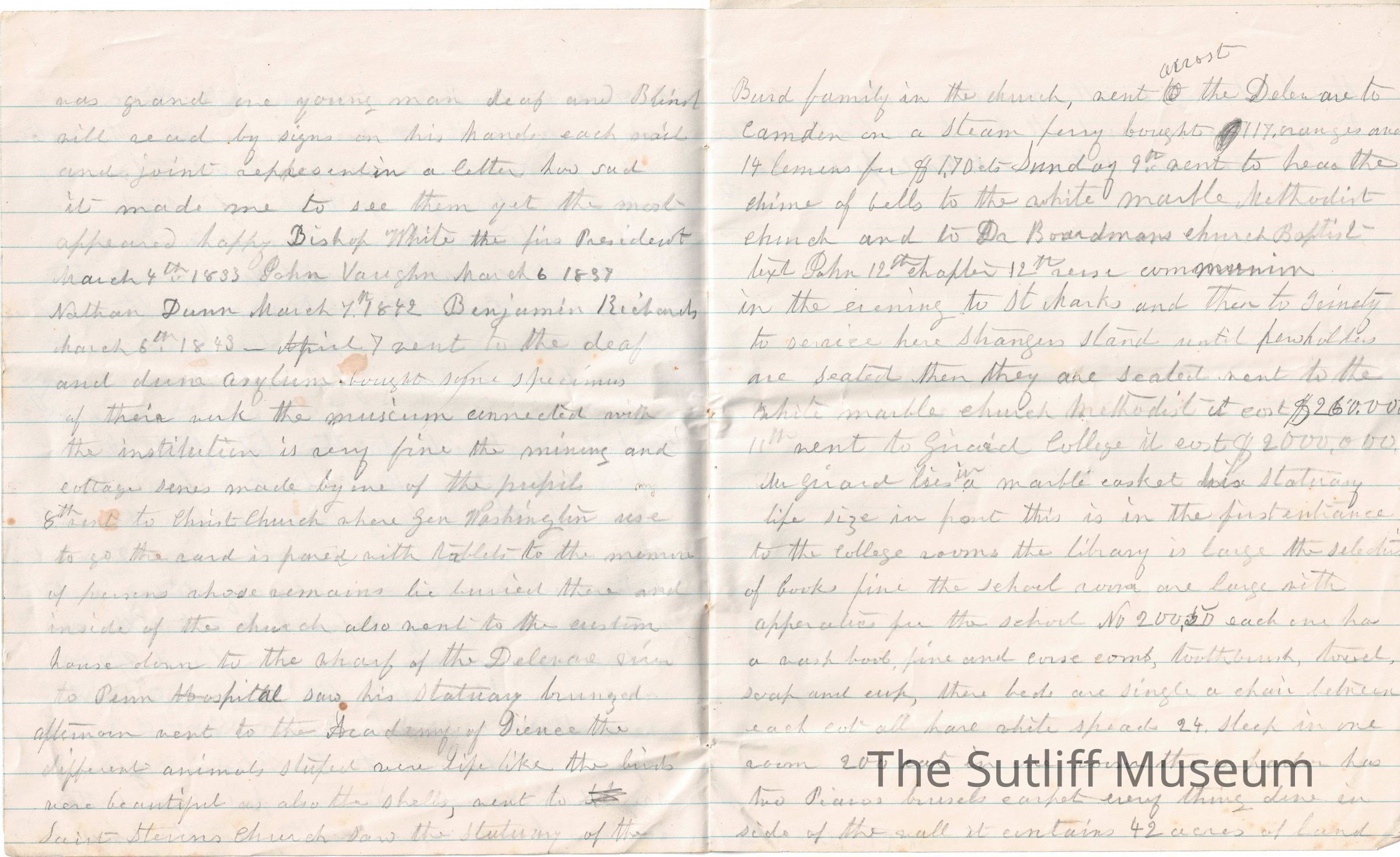 Phebe Lord Marvin Sutliff Trip to PhiladelphiaEntry/Object ID