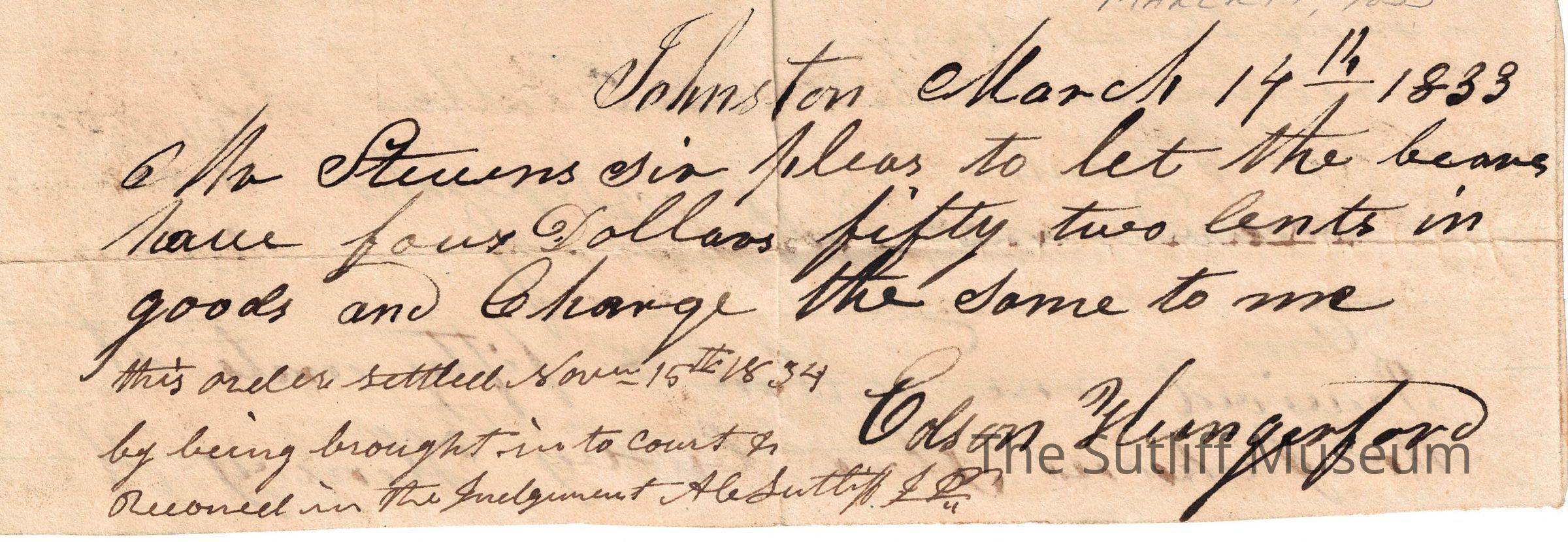 A note from Edson Hungerford to Mr. Stevens commented on by Allen Curtis Stevens.Relationships
