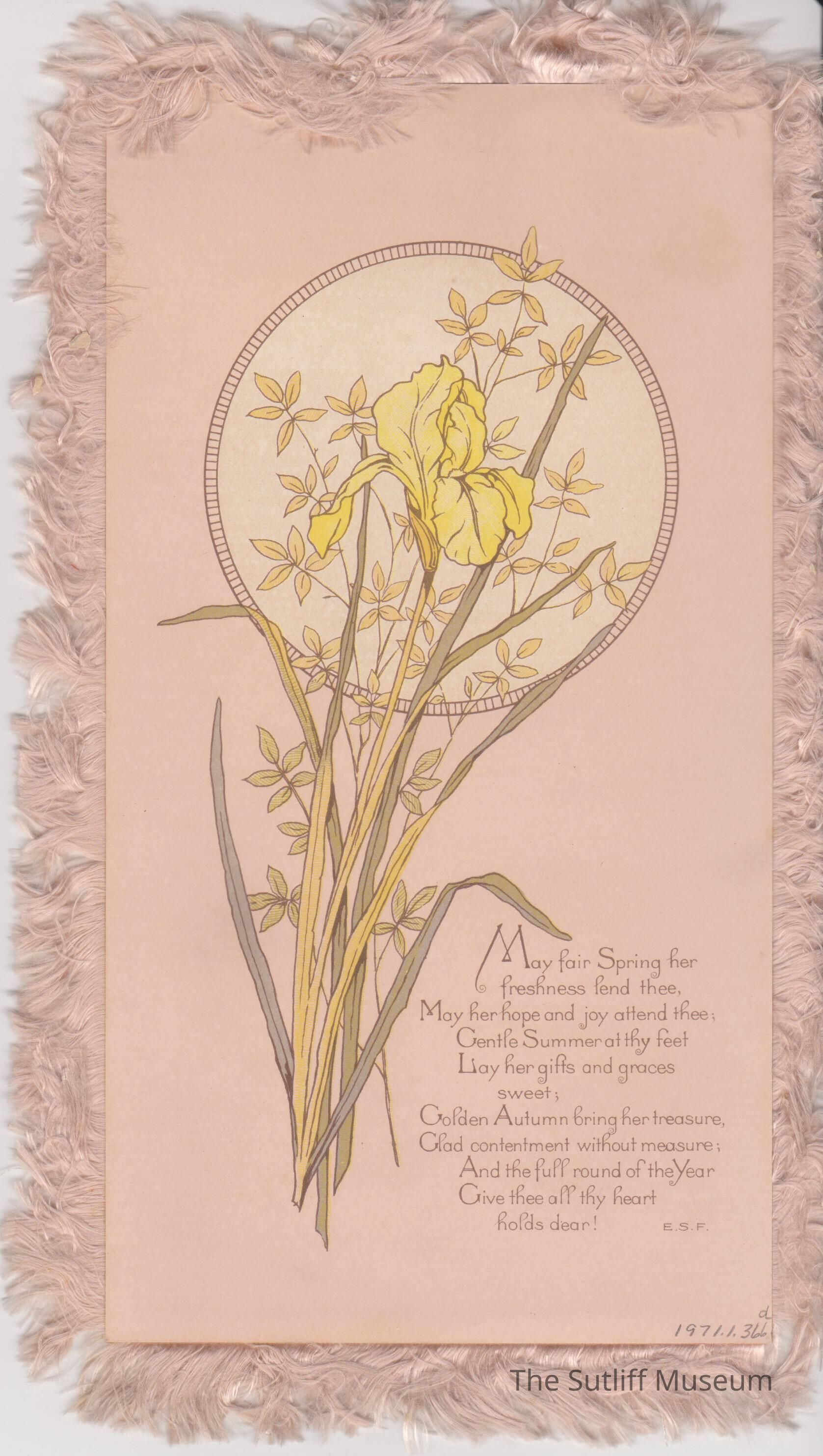 May fair Spring her freshness lend thee, May her hope and joy attend thee; Gentle Summer thy feet Lay her gifts and graces sweet; Golden Autumn bring her treasure, Glad contentment without measure; and the full round of the Year Give thee all thy heart holds dear! E.S.F.Collection