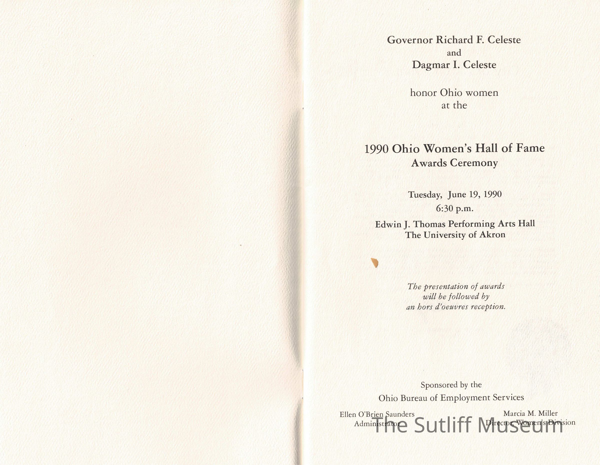 1990 Ohio Women's Hall of Fame ProgramEntry/Object ID