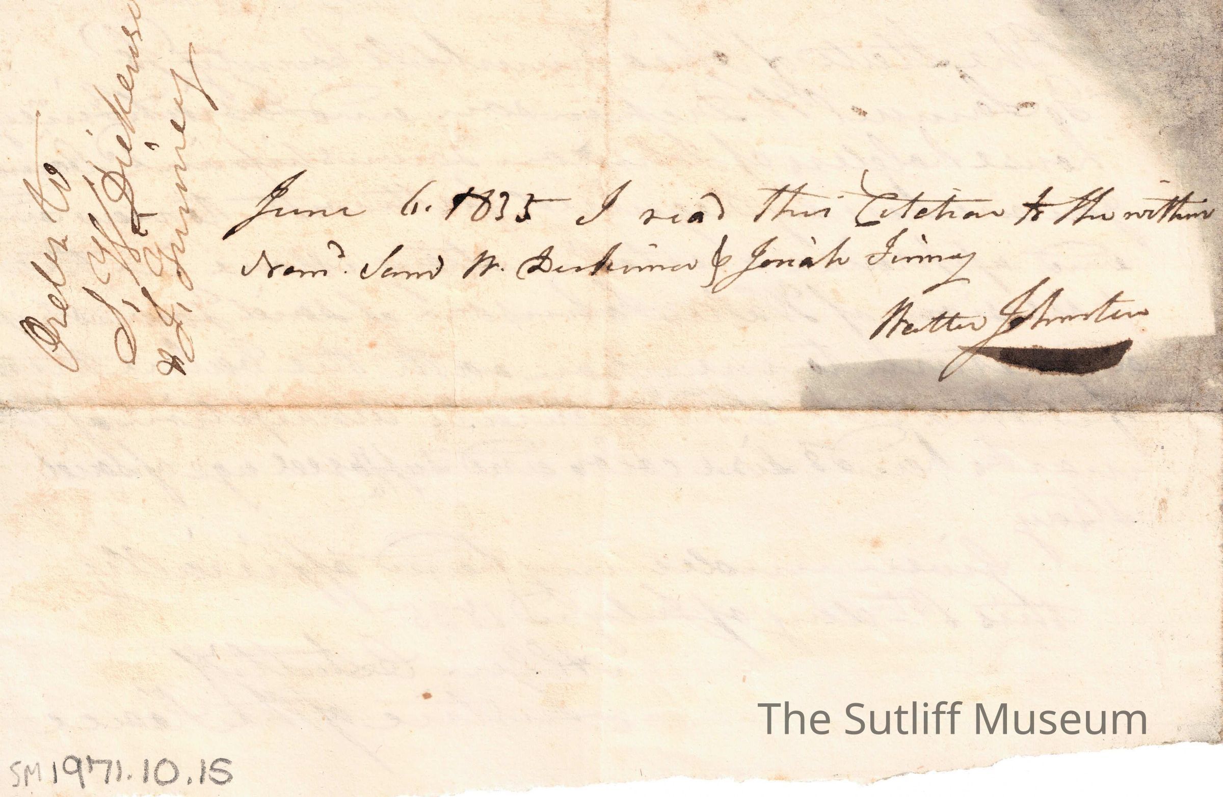 A letter from Allen Curtis Sutliff to Samuel W. Dickenson regarding the need of a true and accurate description of something in his possession.Relationships