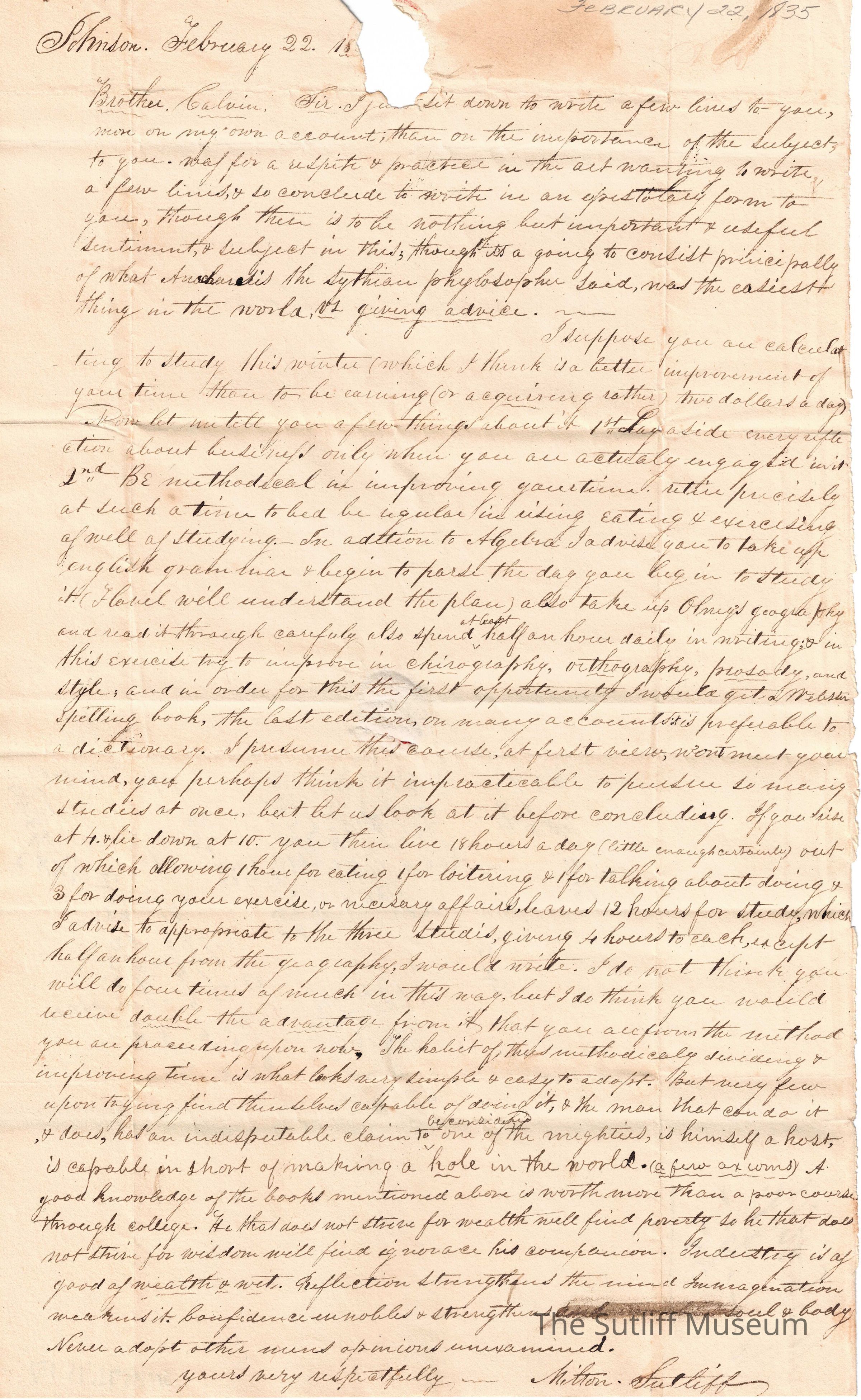 A letter from Milton Sutliff to Calvin Granger Sutliff regardingRelationships