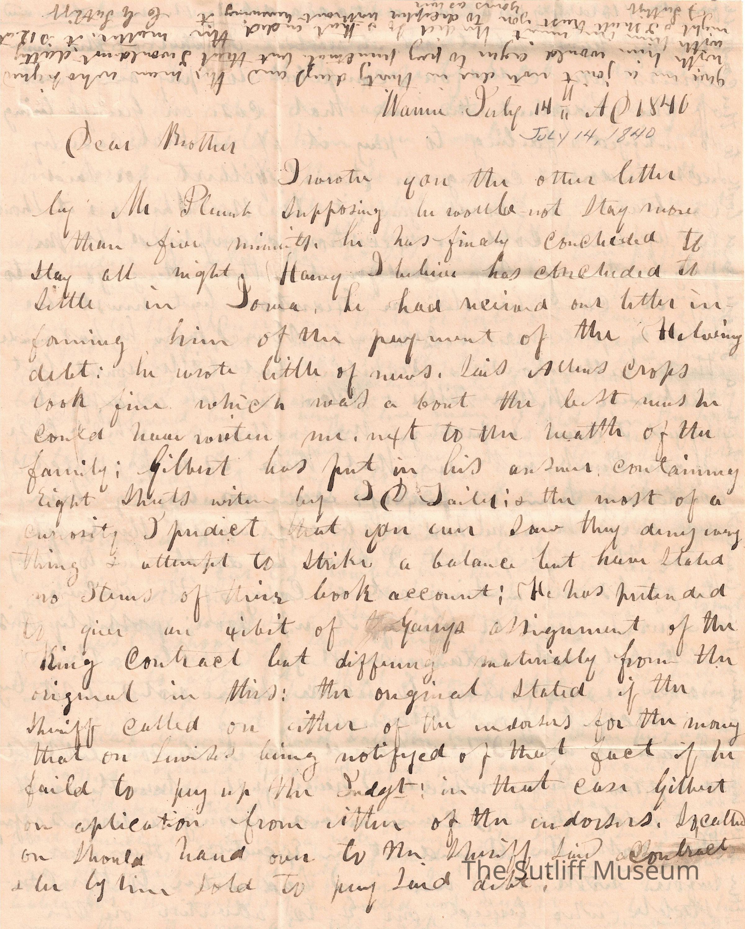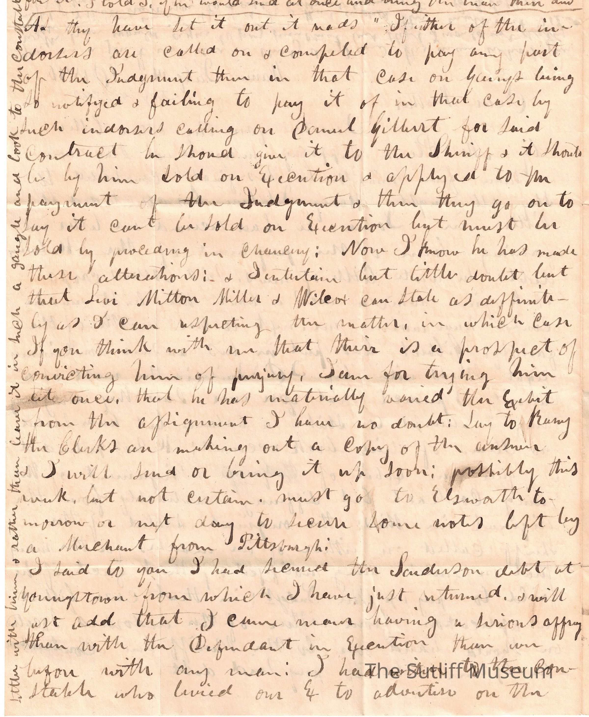 Letter from Calvin Granger Sutliff to Flavel Sutliff regarding various people's financial and legal situations.Collection