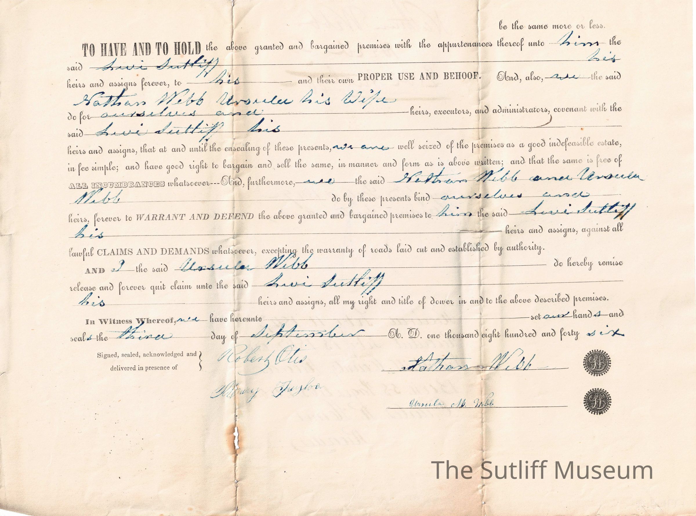 A land transfer from Levi Sutliff to Nathan Webb and his family.Relationships