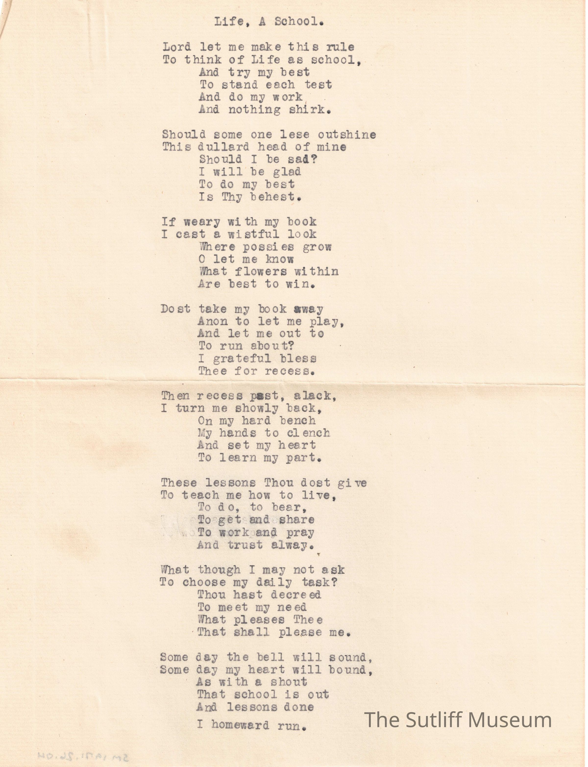 "Life, A School."Entry/Object ID