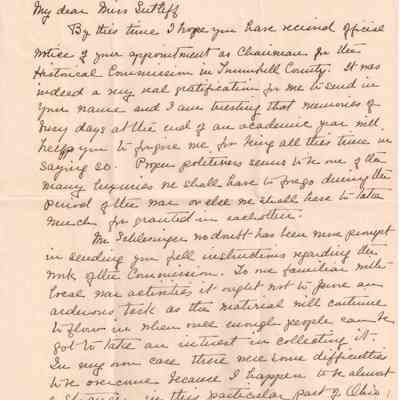 A letter from Martha L. Edwards to Phebe T Sutliff following the official appointment of Phebe as the Chairman of the Historical Commission in Trumbull County.Relationships