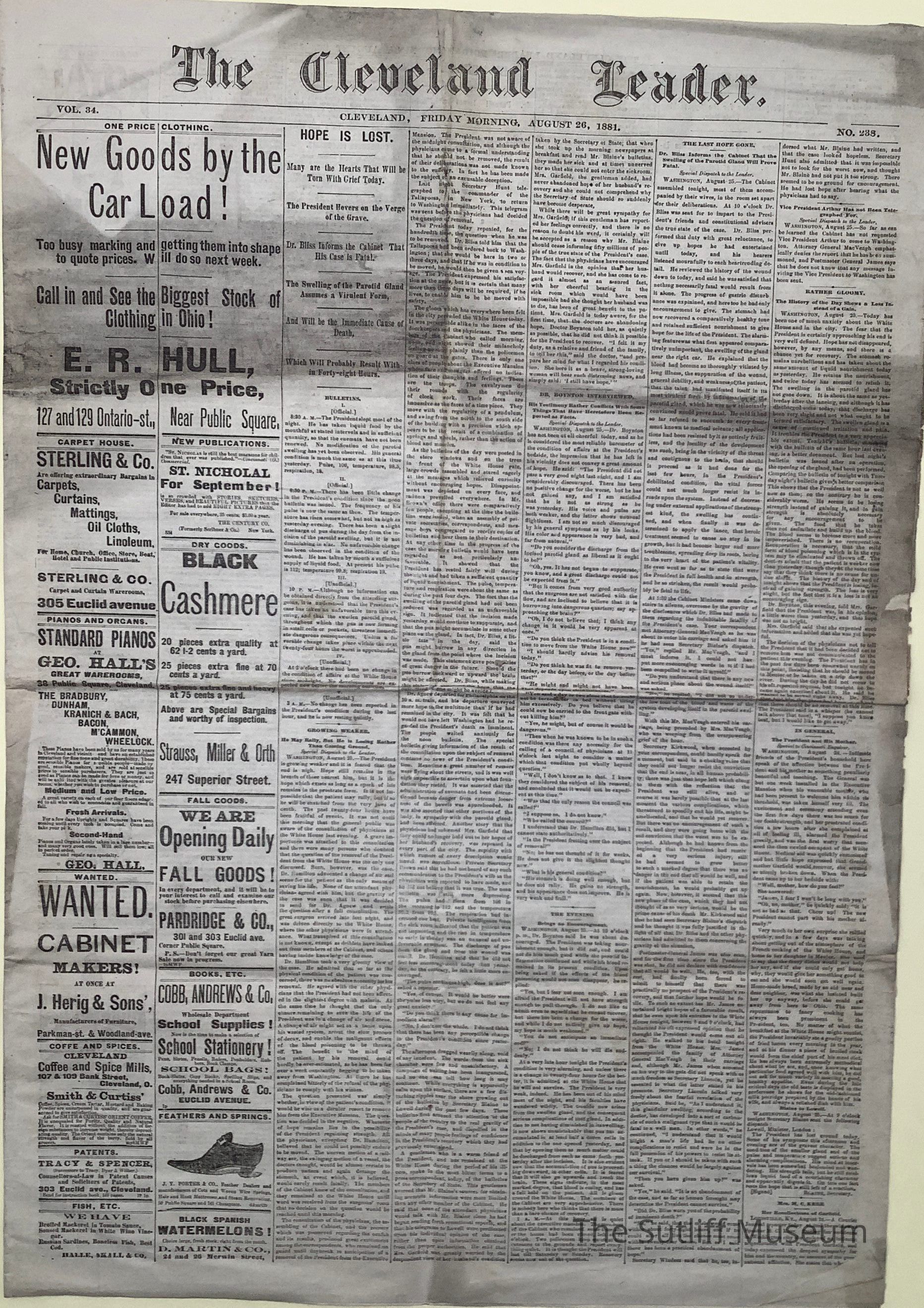 The Cleveland Leader newspaper, published August 26, 1881.Collection