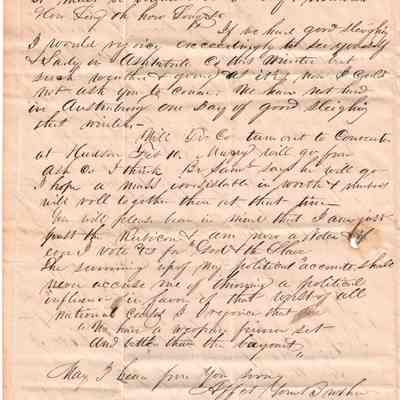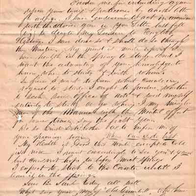 A letter from Hiram A. Plumb to his brother in law Levi Sutliff regarding a decision he has made, the desire to study, and other updates.Collection