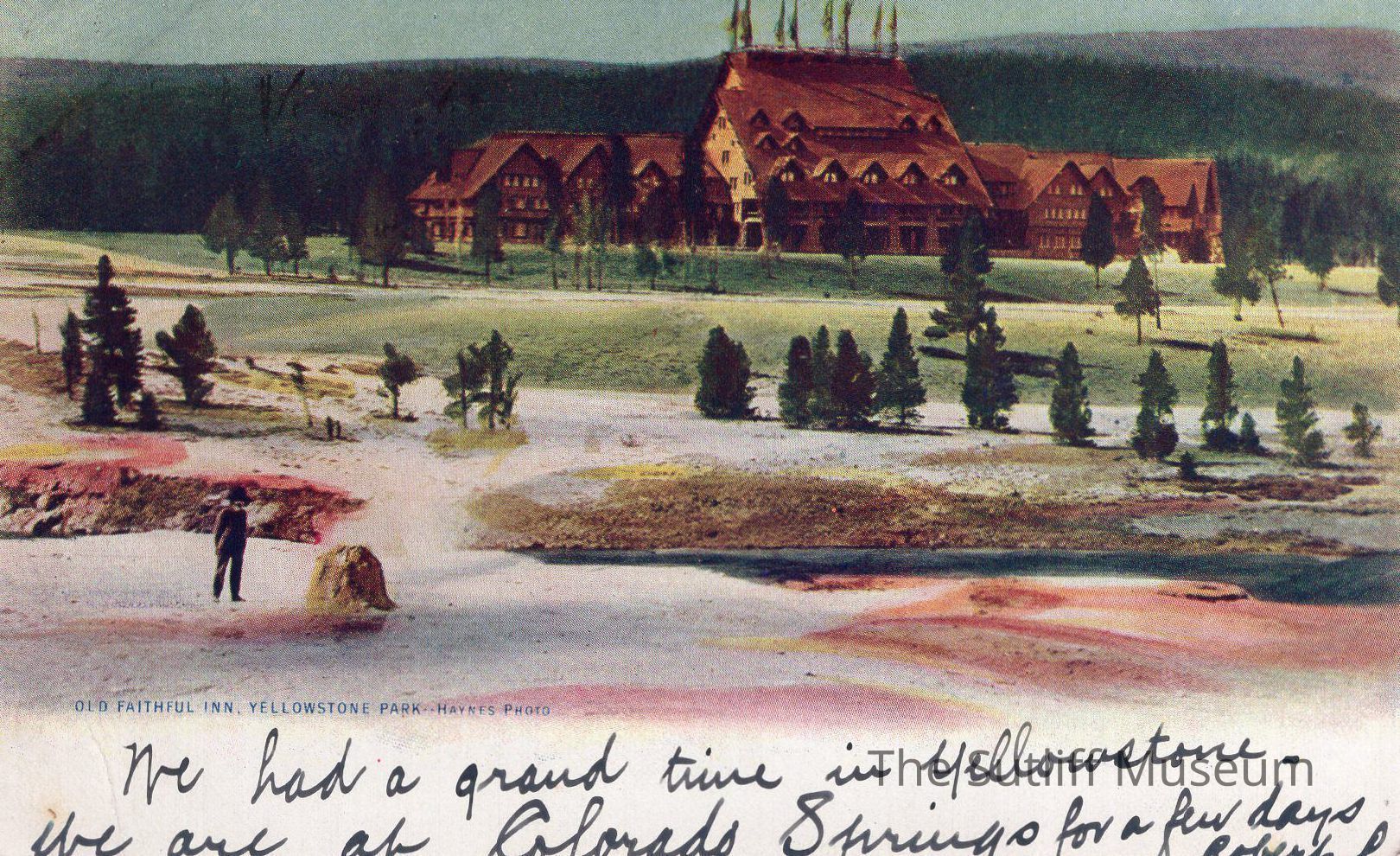 A postcard of Old Faithful Inn, Yellowstone Park.Collection