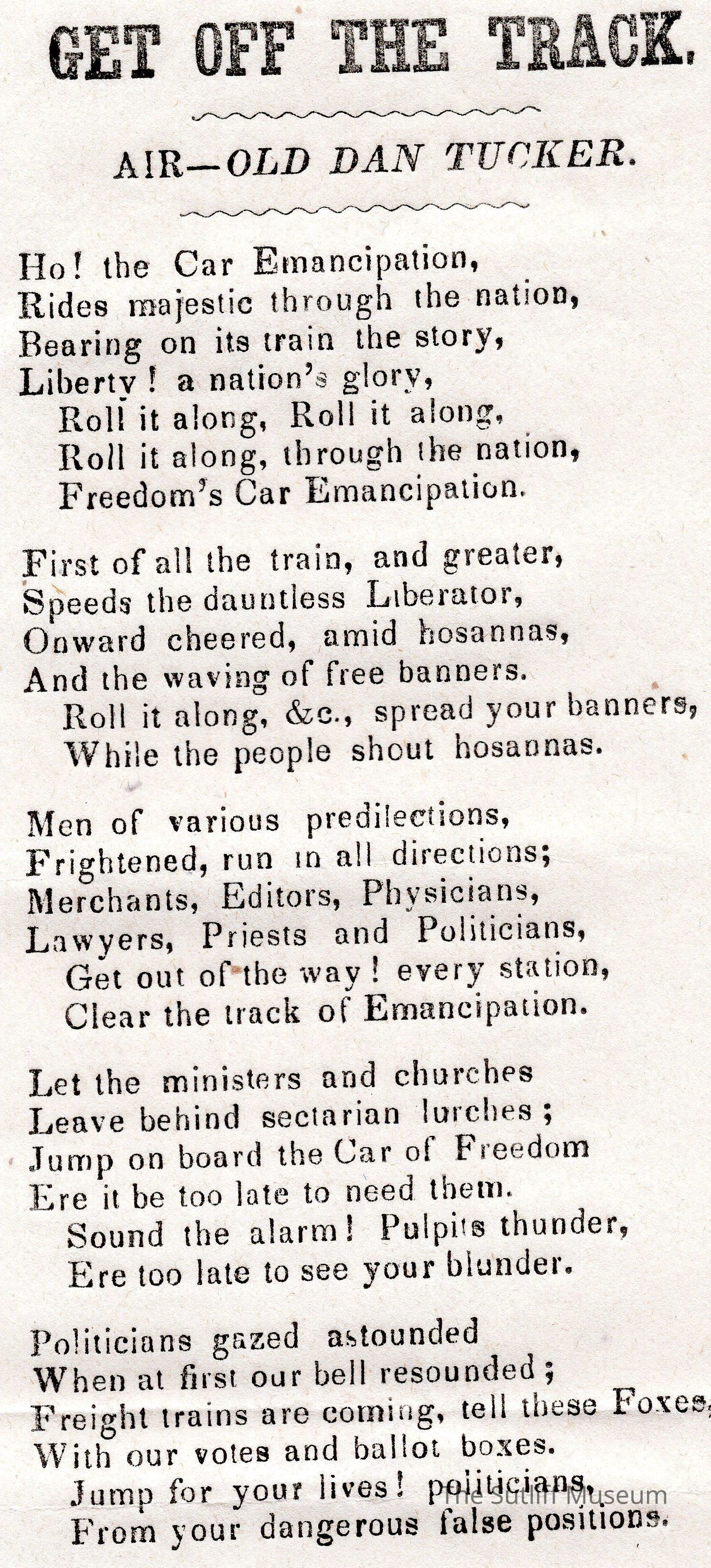 A song titled "Get Off The Track" by Old Dan Tucker.Collection