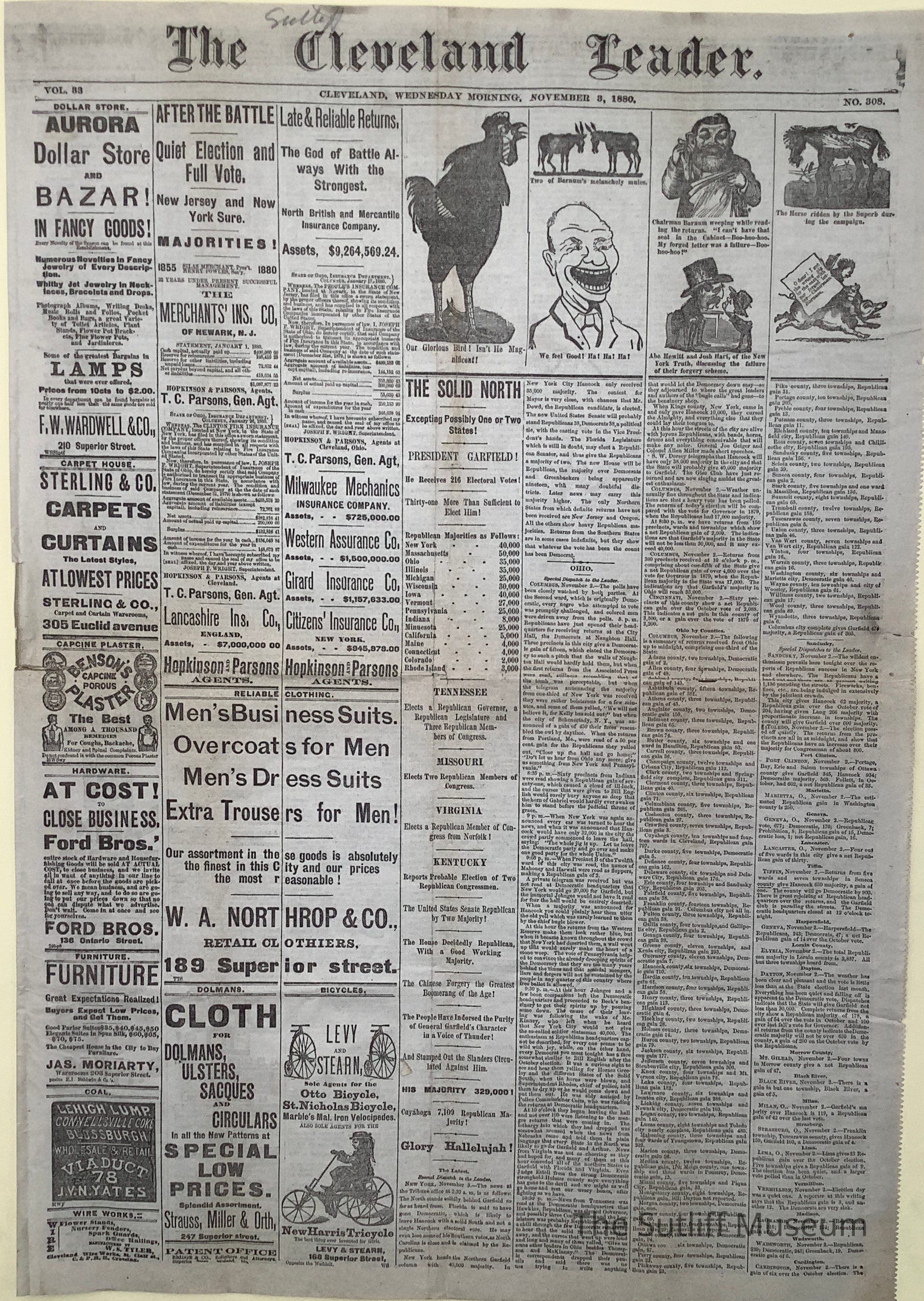 The Cleveland Leader newspaper, published November 3, 1880.Collection