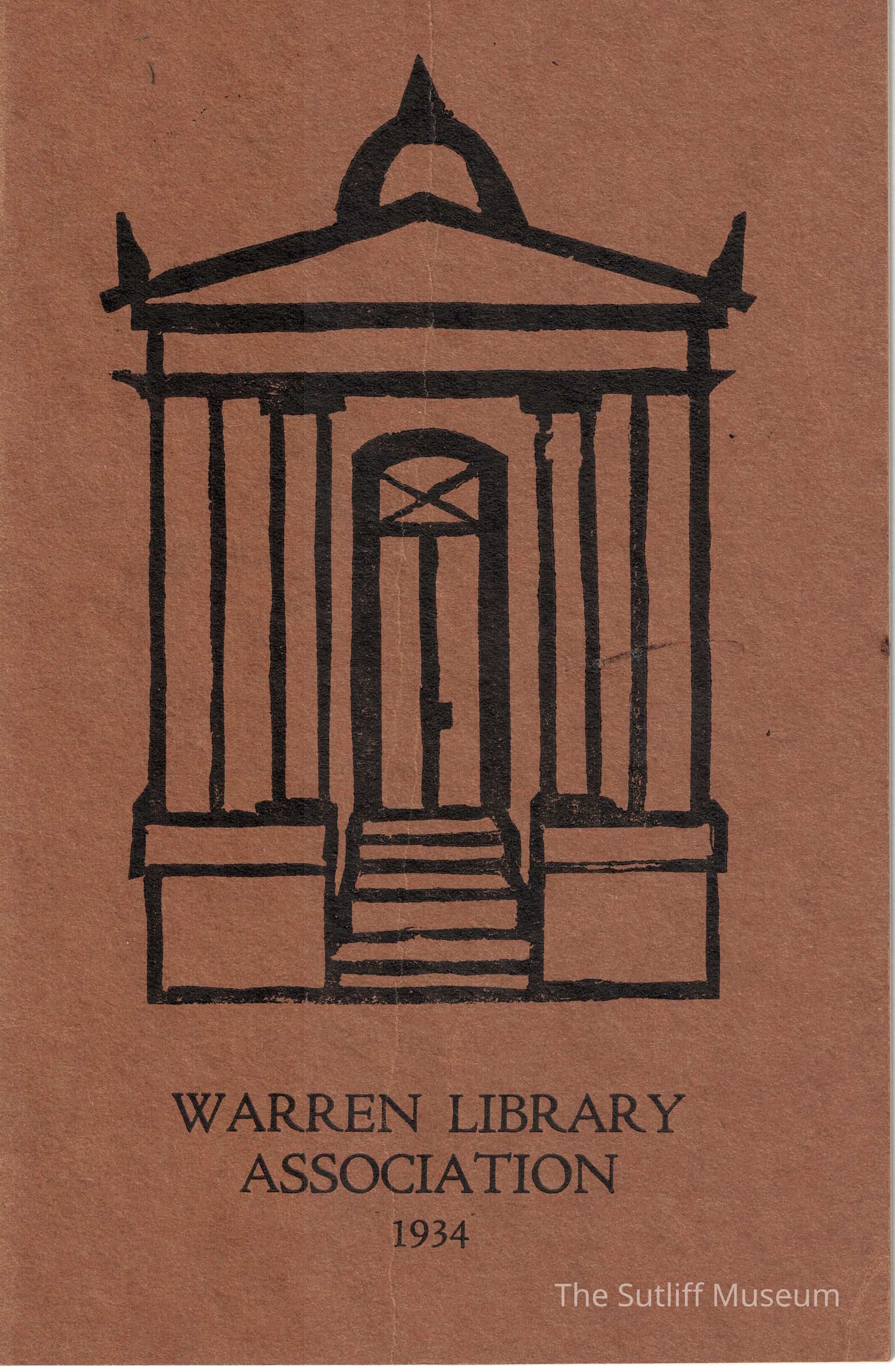 A booklet titled "Warren Library Associated 1934" describing the library itself, the association, and a list of members.