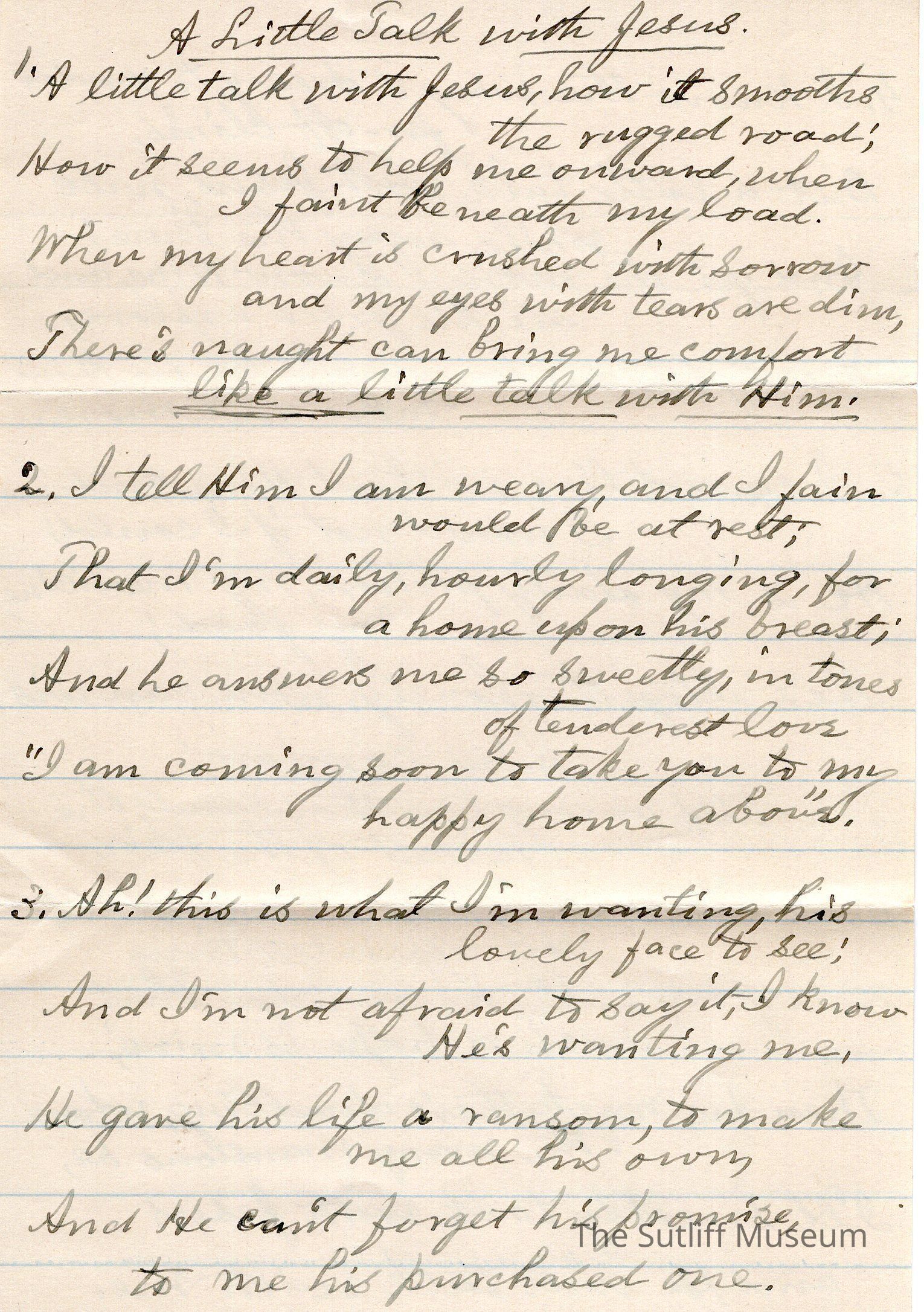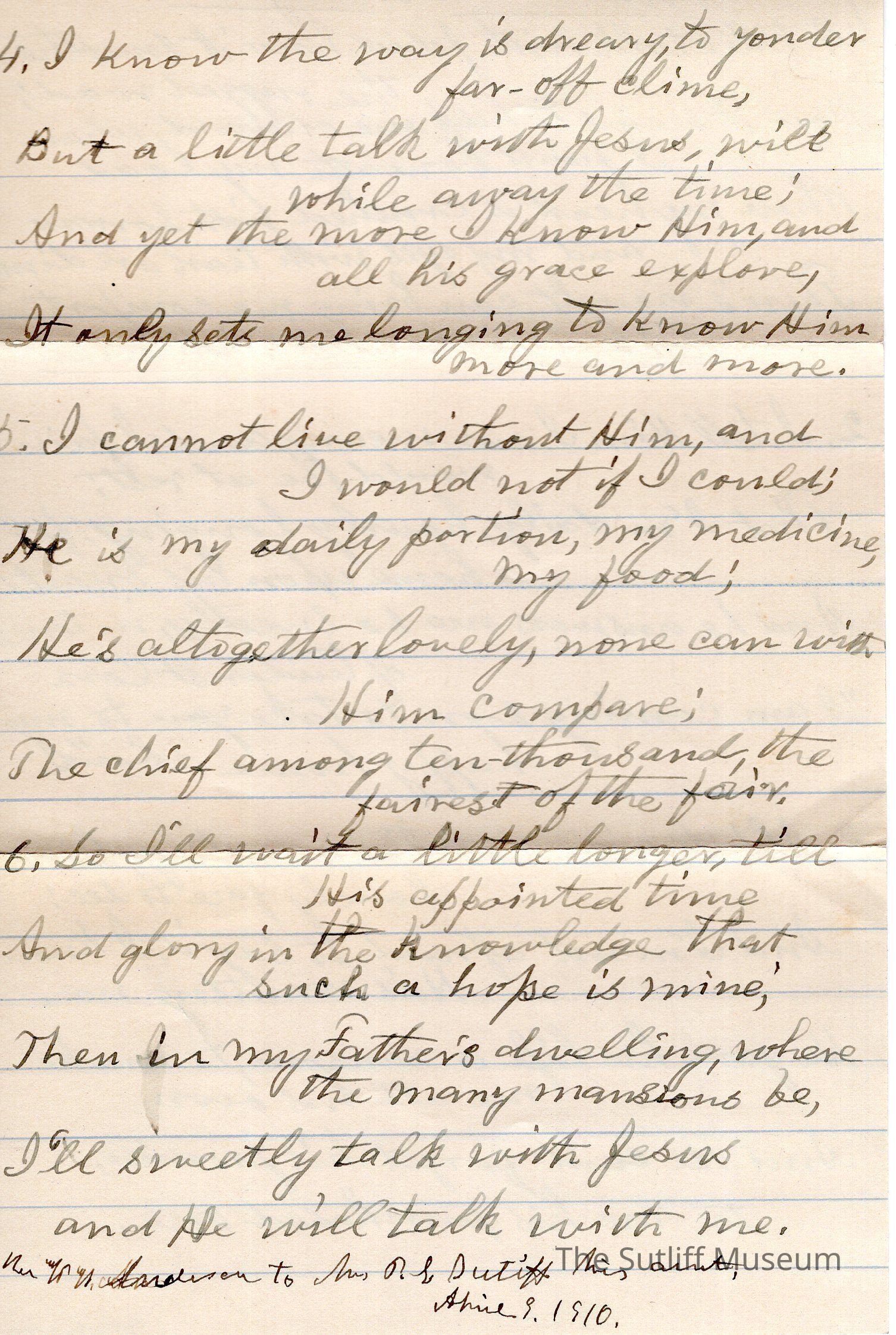 A letter from W.W. Anderson to Mrs. P.L. Sutliff, his aunt, titled "A Little Talk with Jesus."Archive Details