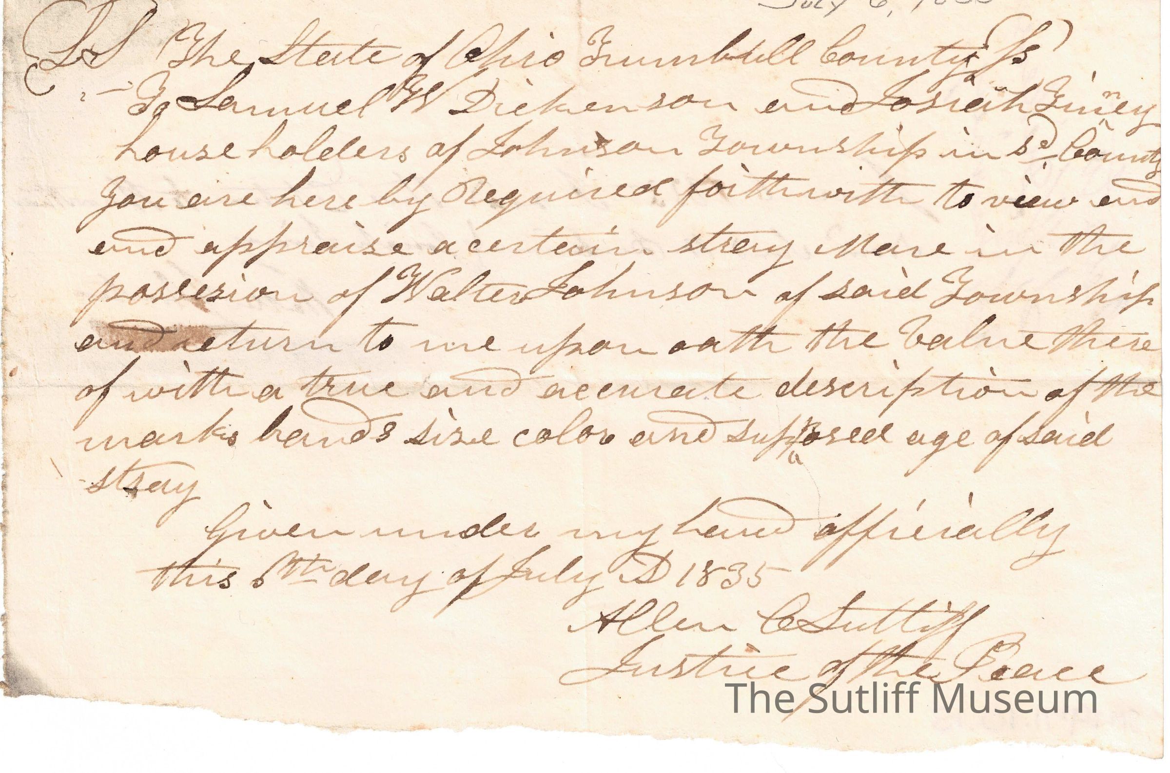 A letter from Allen Curtis Sutliff to Samuel W. Dickenson regarding the need of a true and accurate description of something in his possession.Relationships