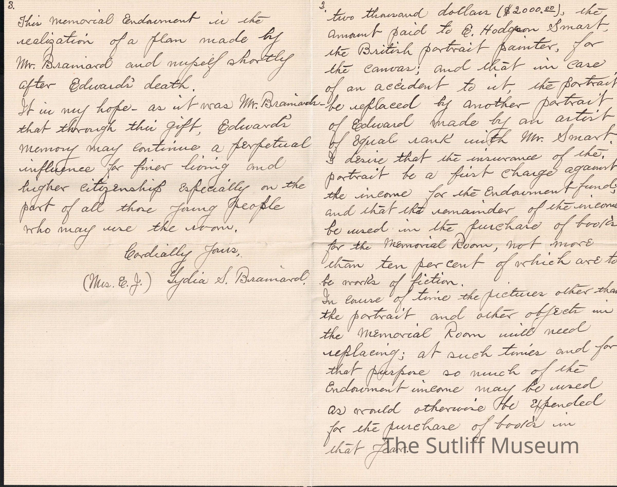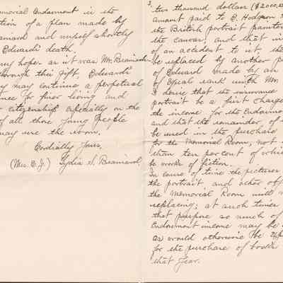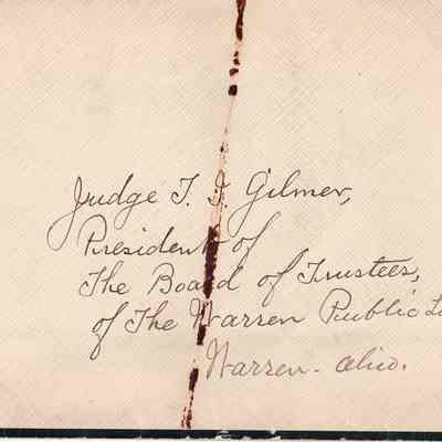 A letter from Lydia Sutliff Brainard to Judge T.I. Gillmer regarding the Edward Sutliff Brainard Room in the Warren Public Library.