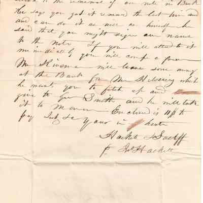 An letter from [Hackett] to one of the Sutliffs regarding Levi Sutliff.