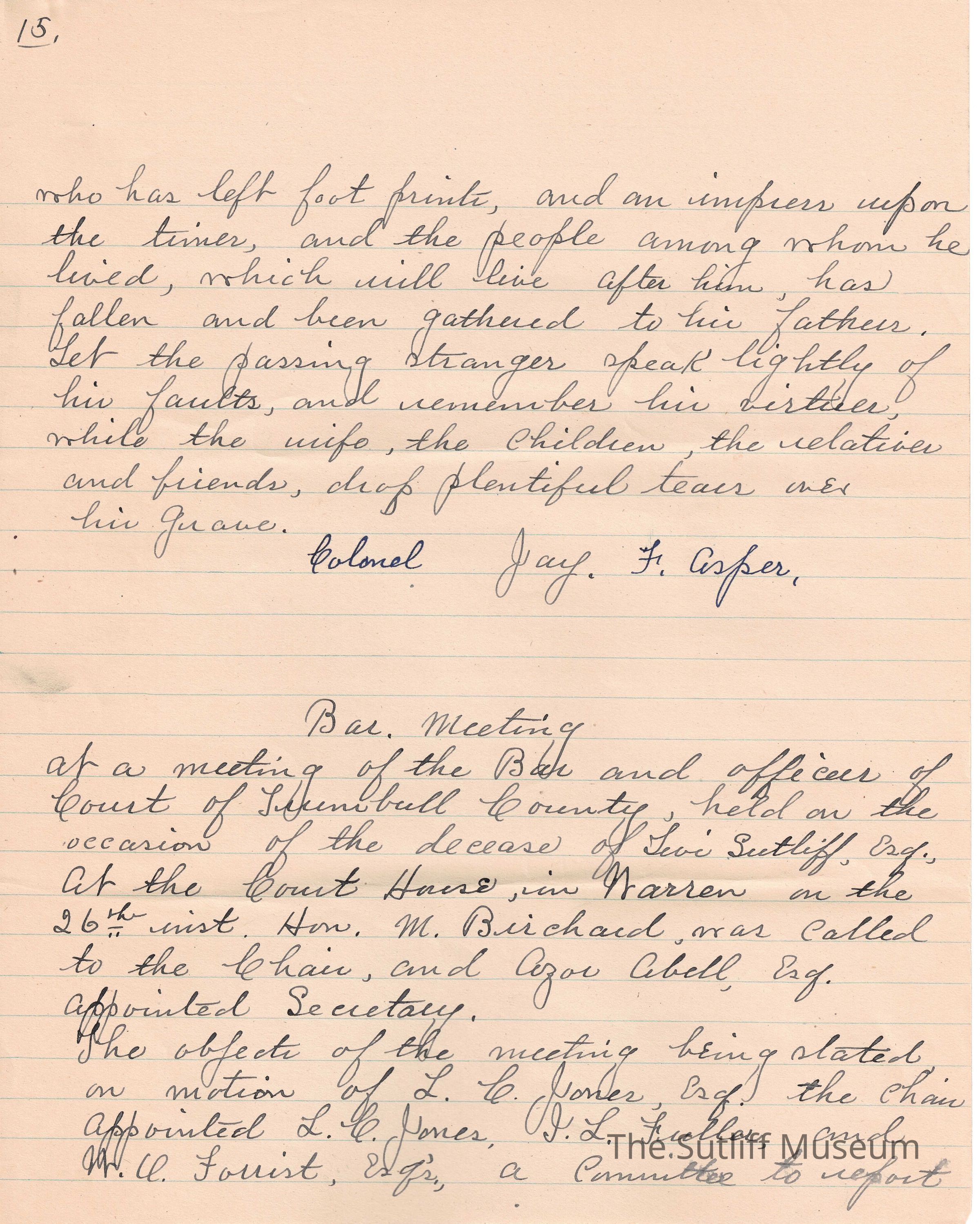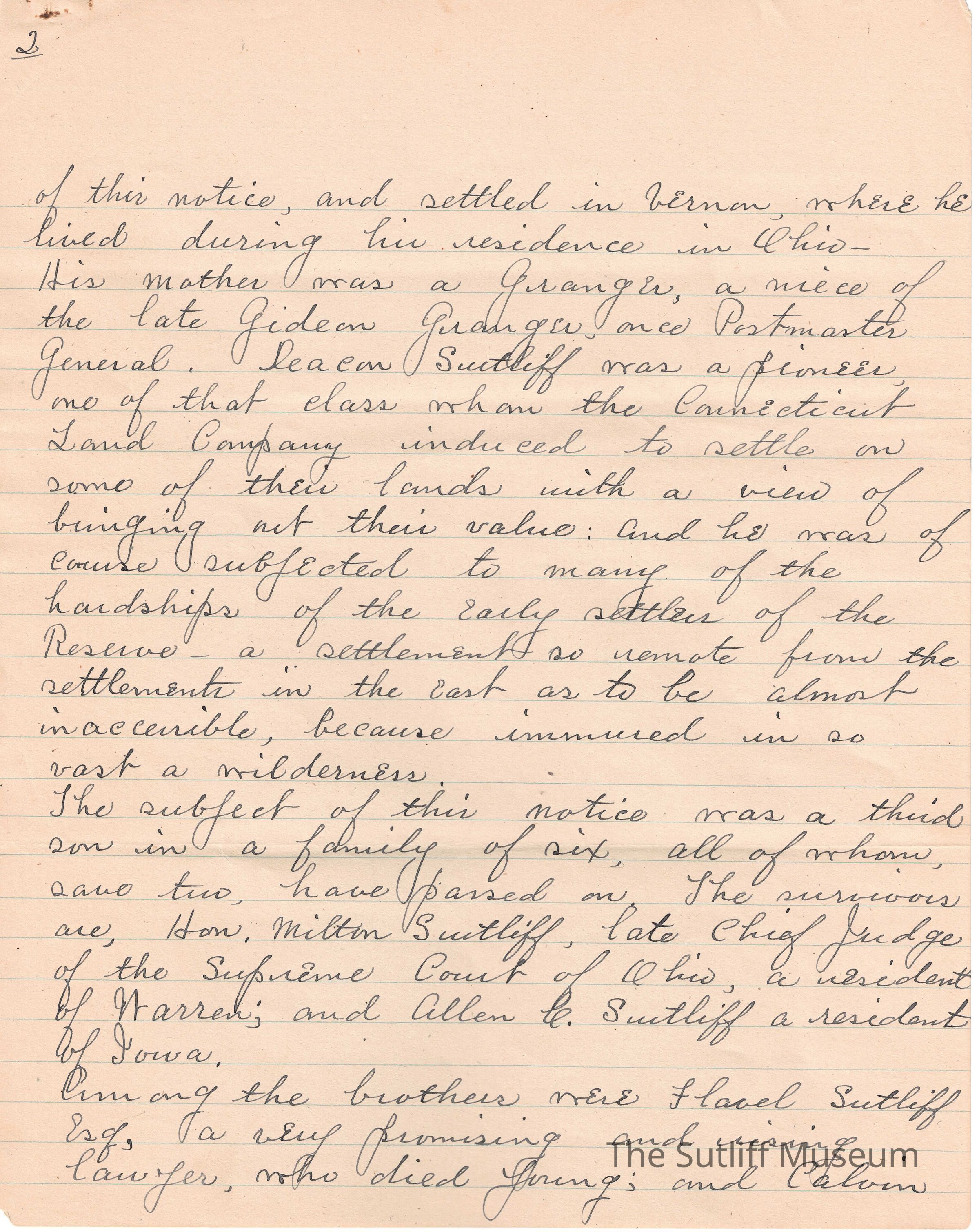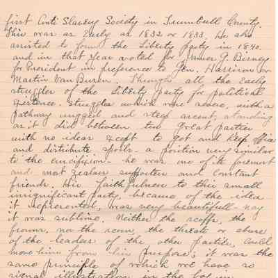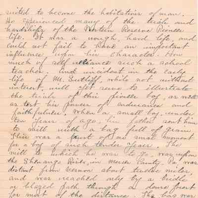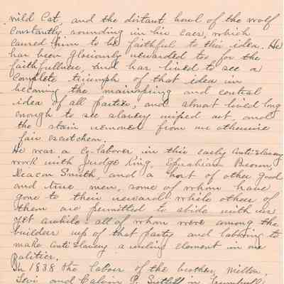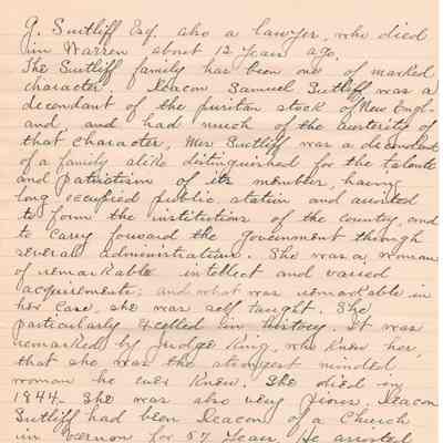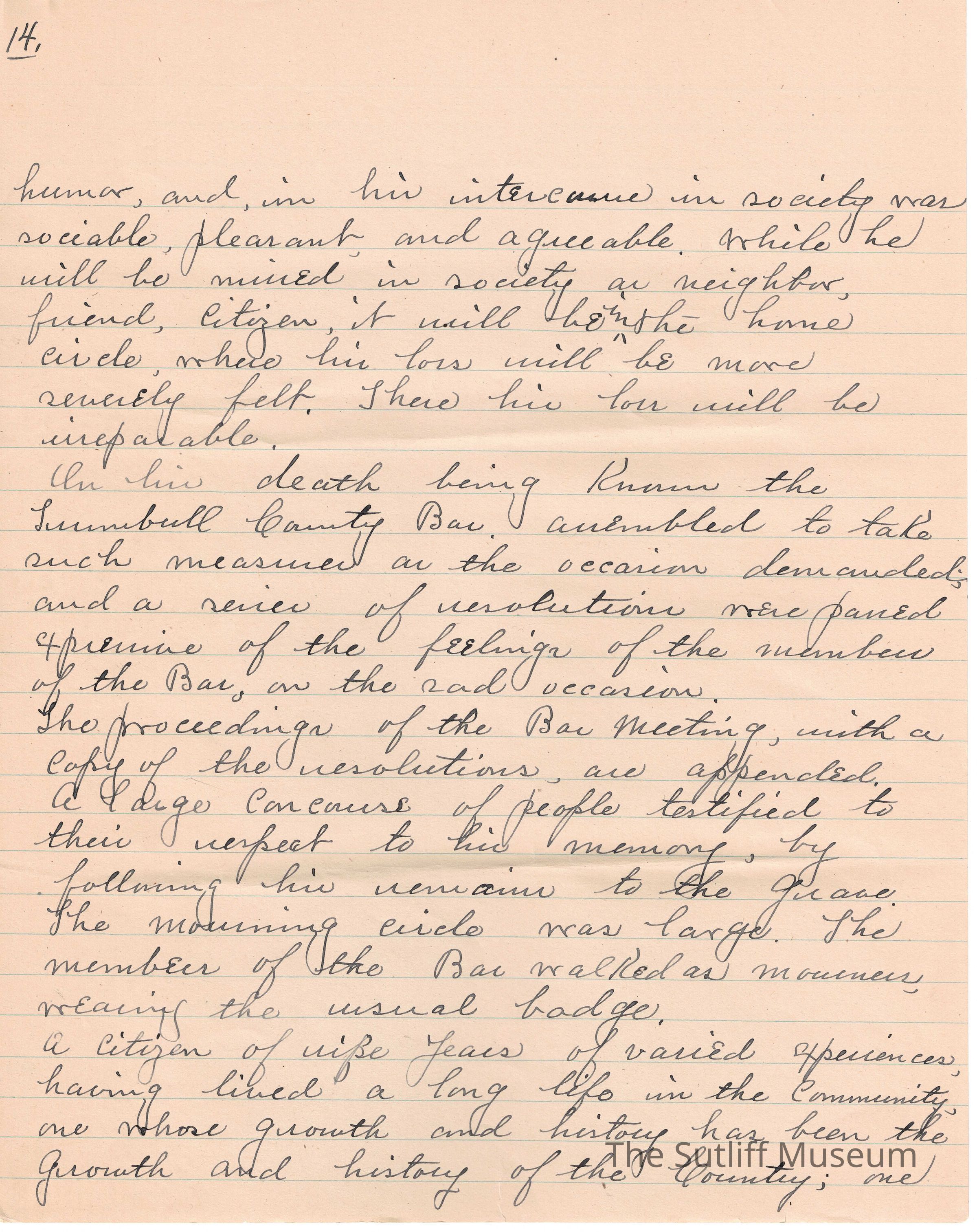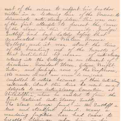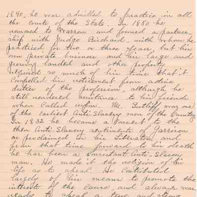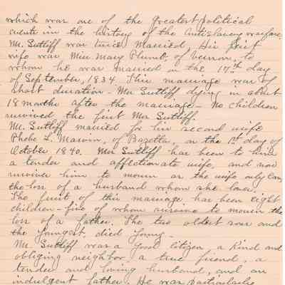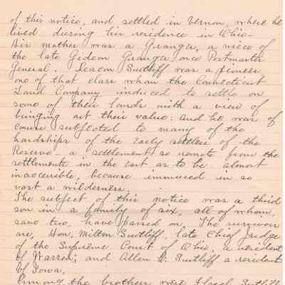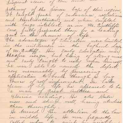 A handwritten copy of Levi Sutliff's obituary written by M. Birchard.