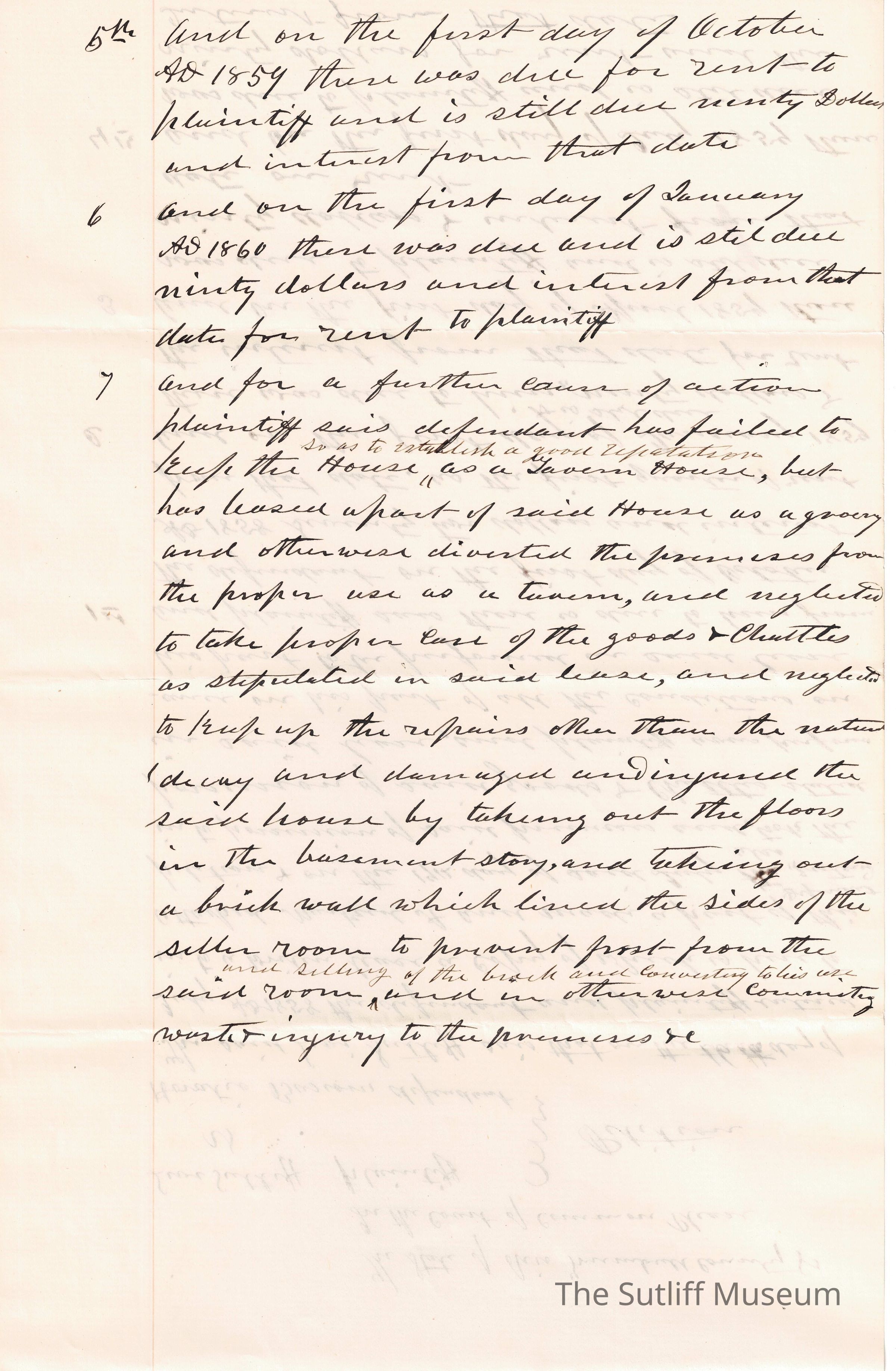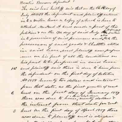 This is a record the legal case of Levi Sutliff vs Horatio Bascom regarding the money owed for various charges. Duplicate of the transcript.Relationships