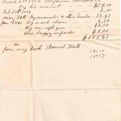 From the book of Daniel Hall, an account of Benjamin Williams payments. A receipt.Relationships