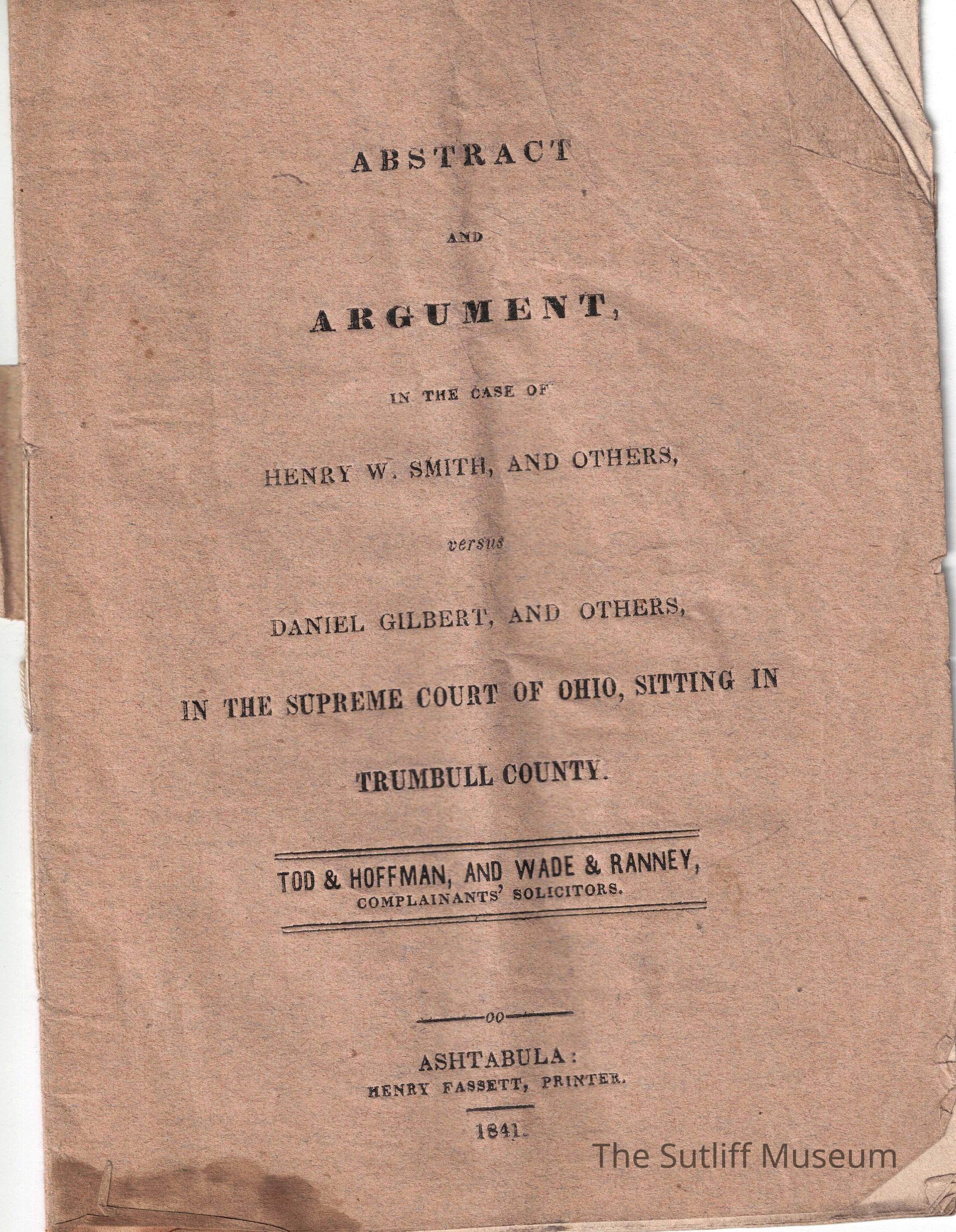 A document explaining the case of Henry W. Smith and Calvin G. Sutliff vs. Daniel GilbertCollection