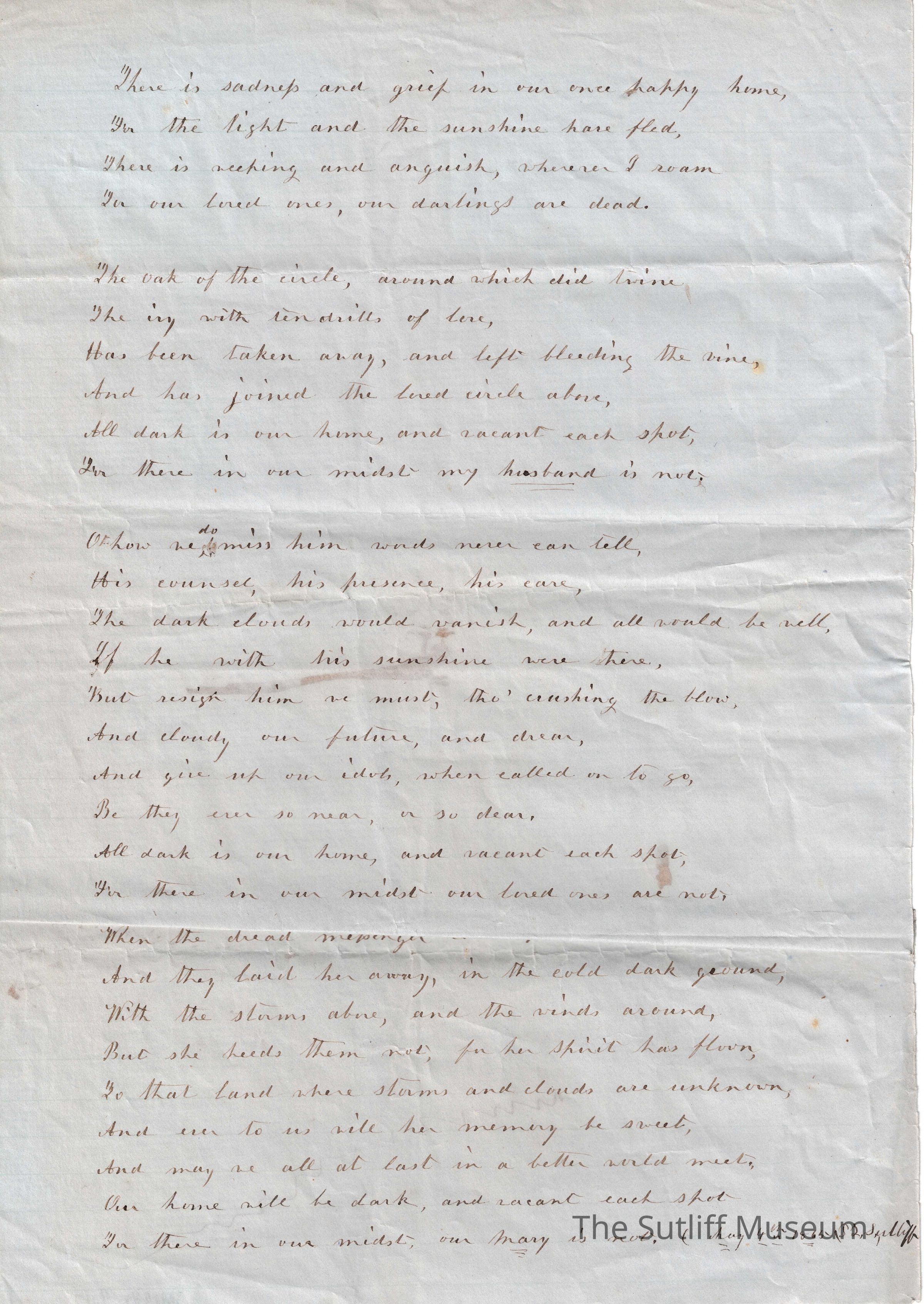 A poem written by Phebe Lord Marvin Sutliff regarding her grief.Collection