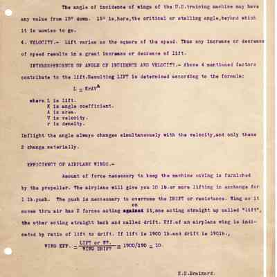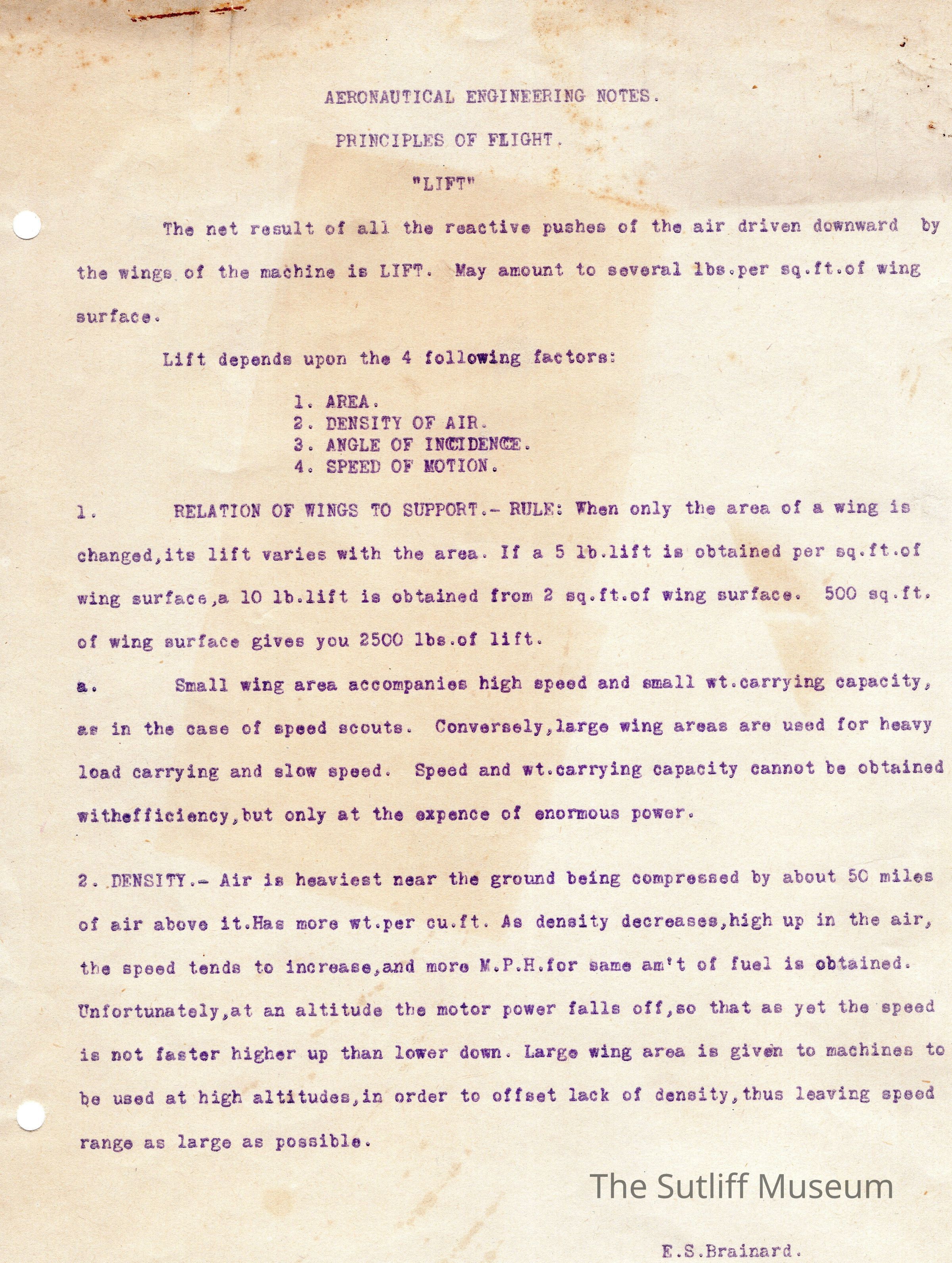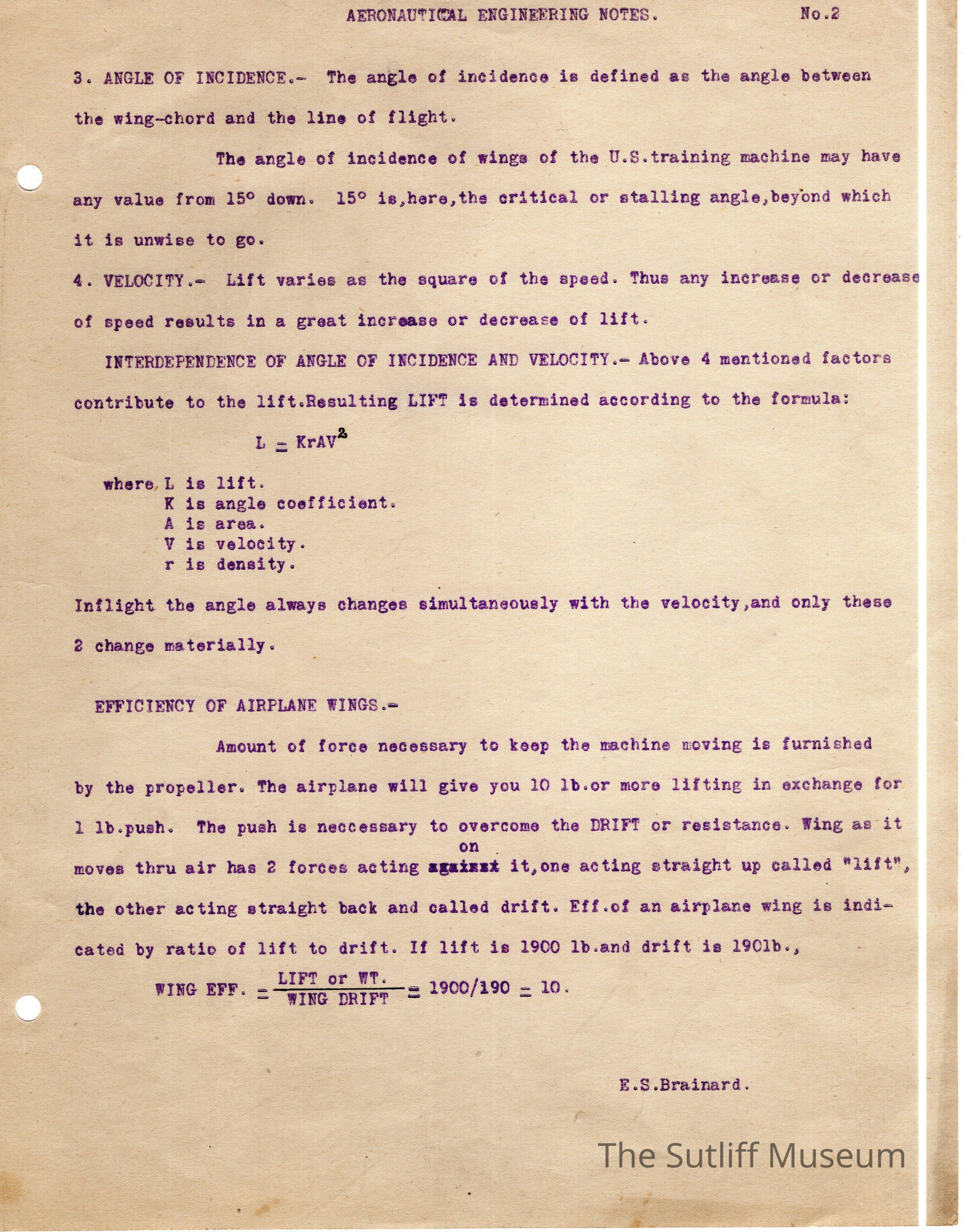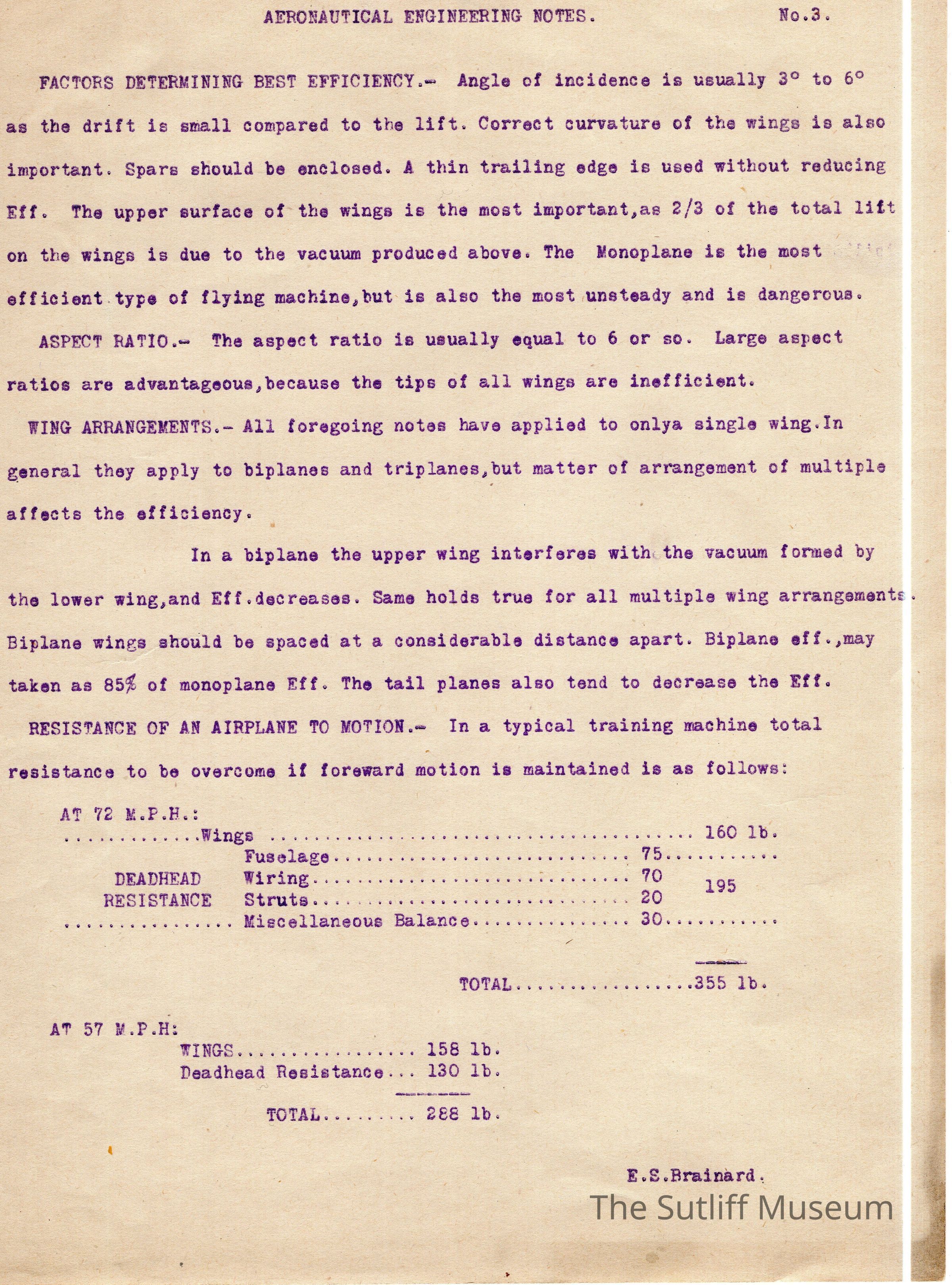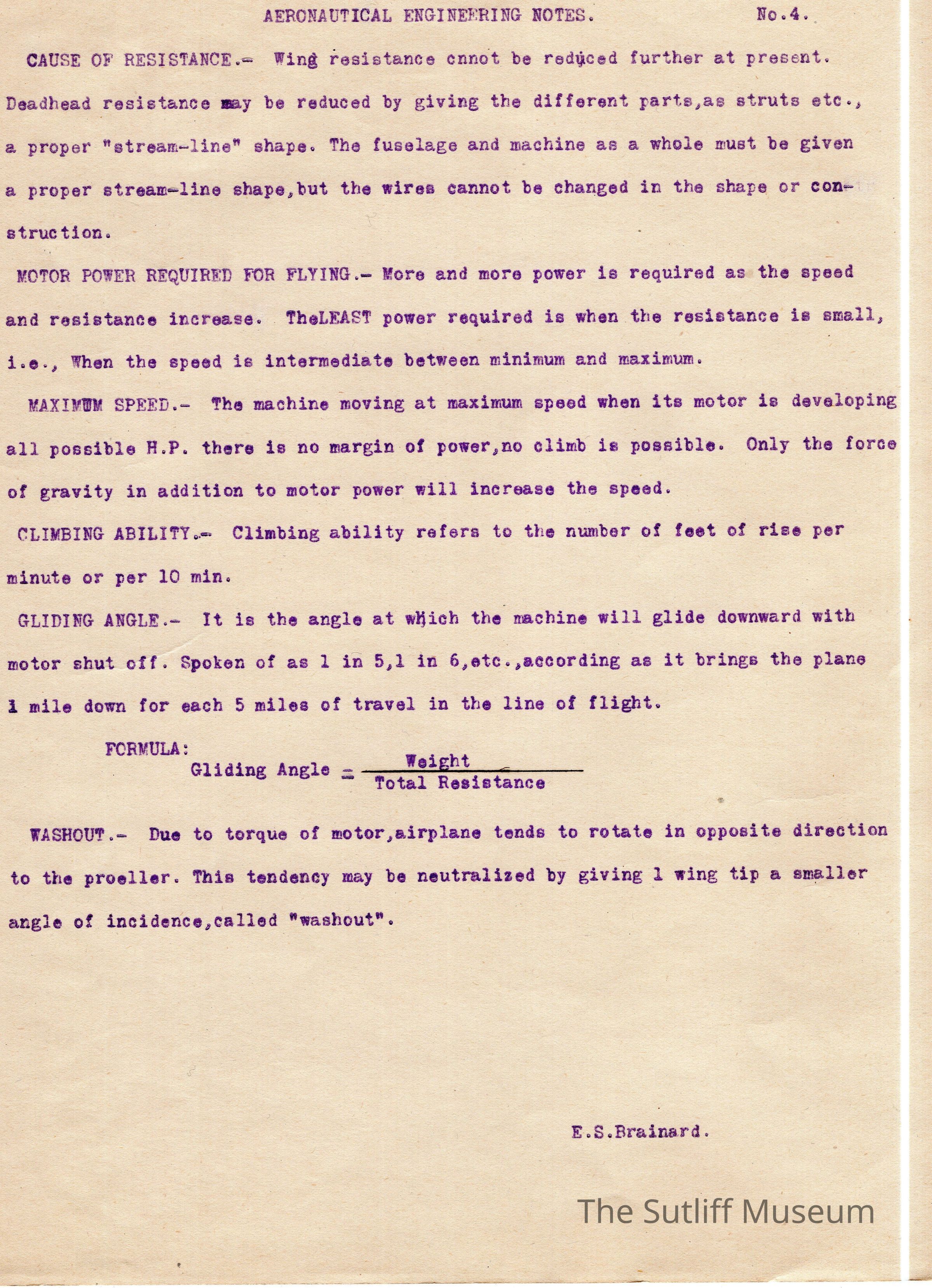 4 pages of Edward Sutliff Brainard's Aeronautical Engineering Notes.Archive Details