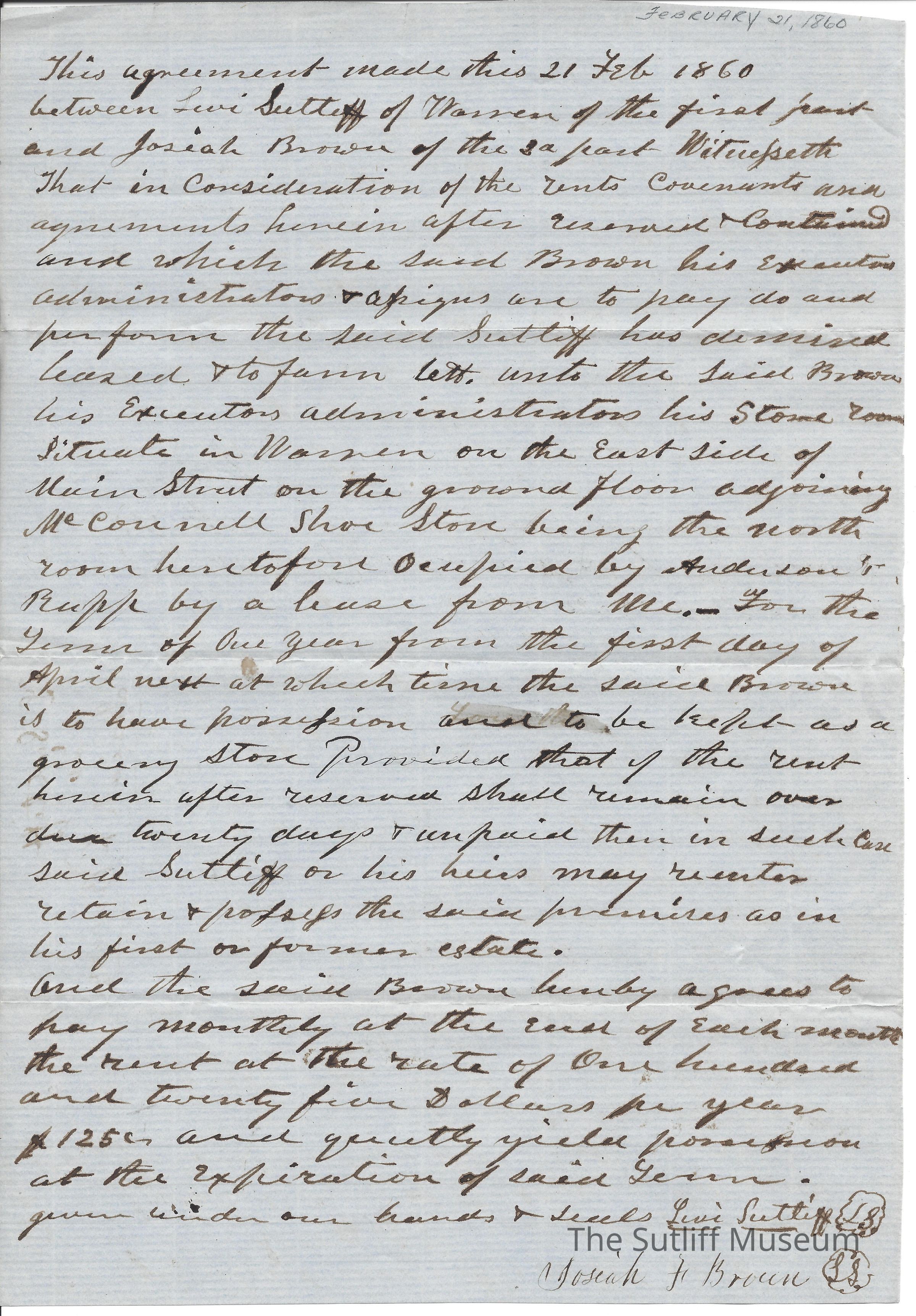 Agreement Between Josiah Brown and Levi SutliffEntry/Object ID