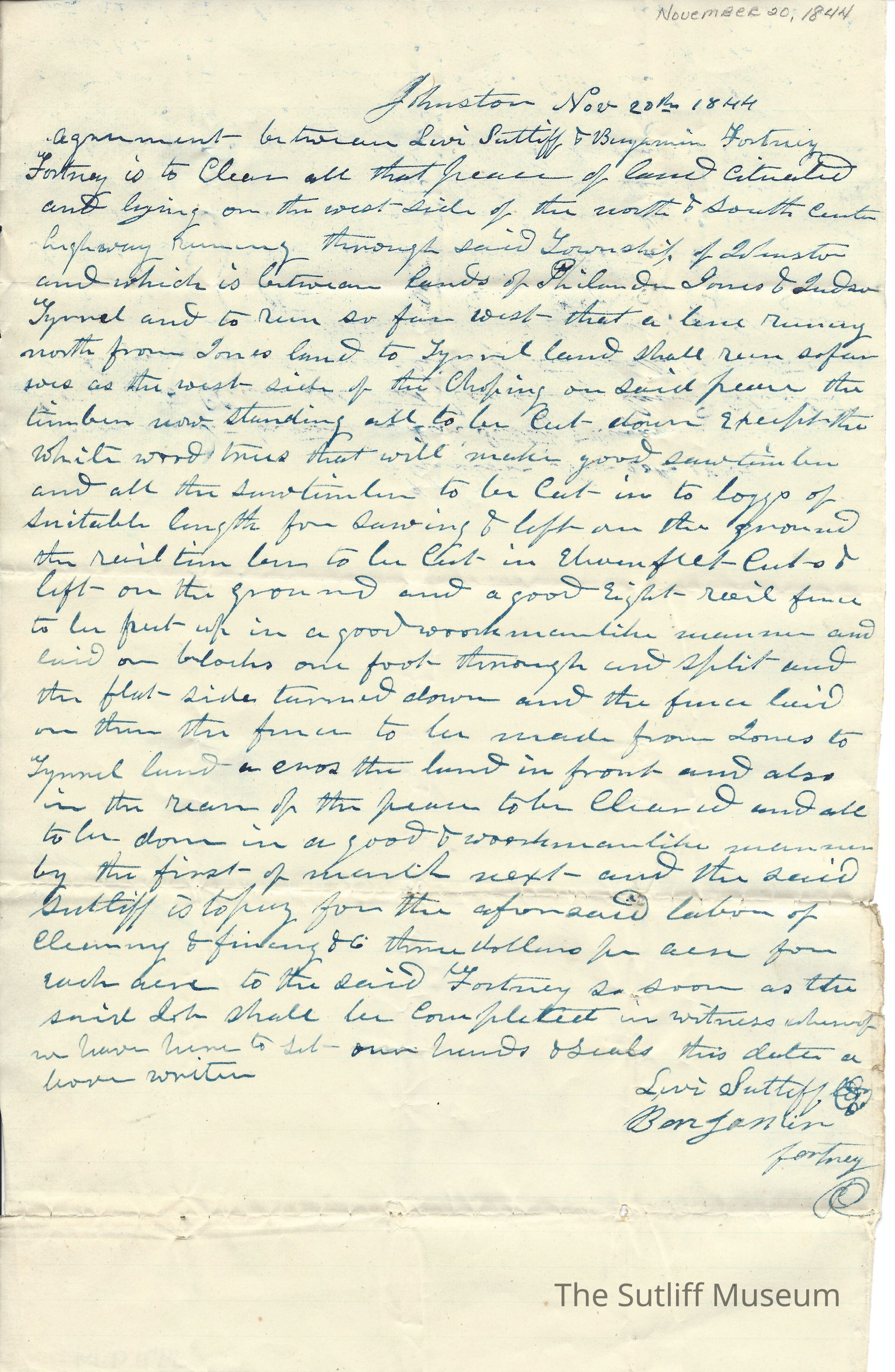 Agreement between Levi Sutliff and Benjamin FortneyEntry/Object ID