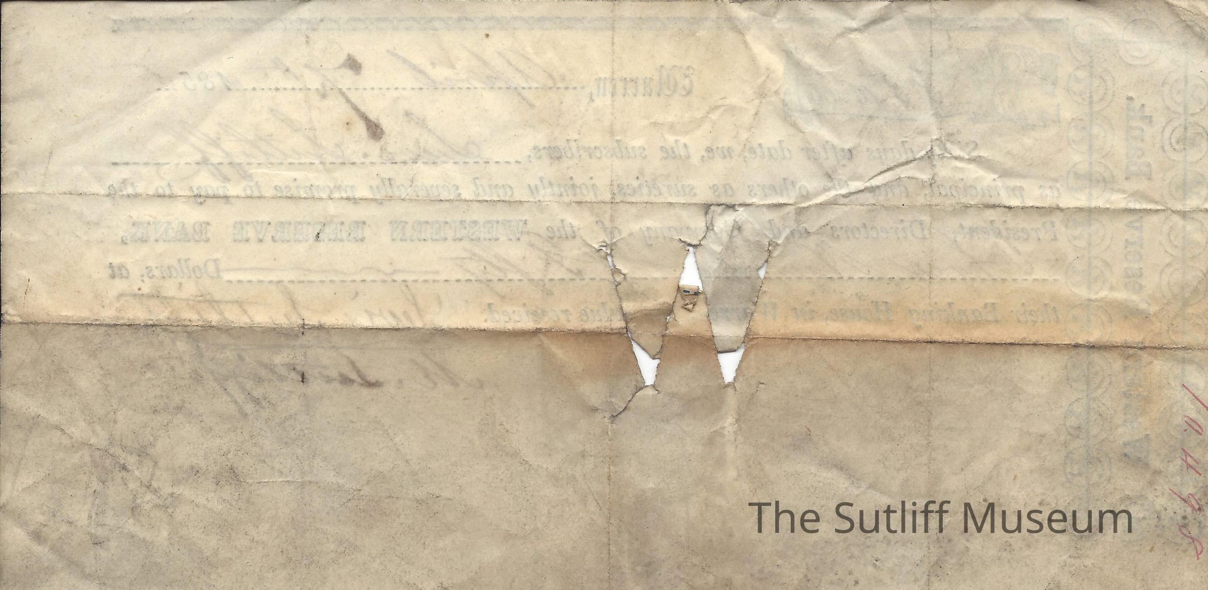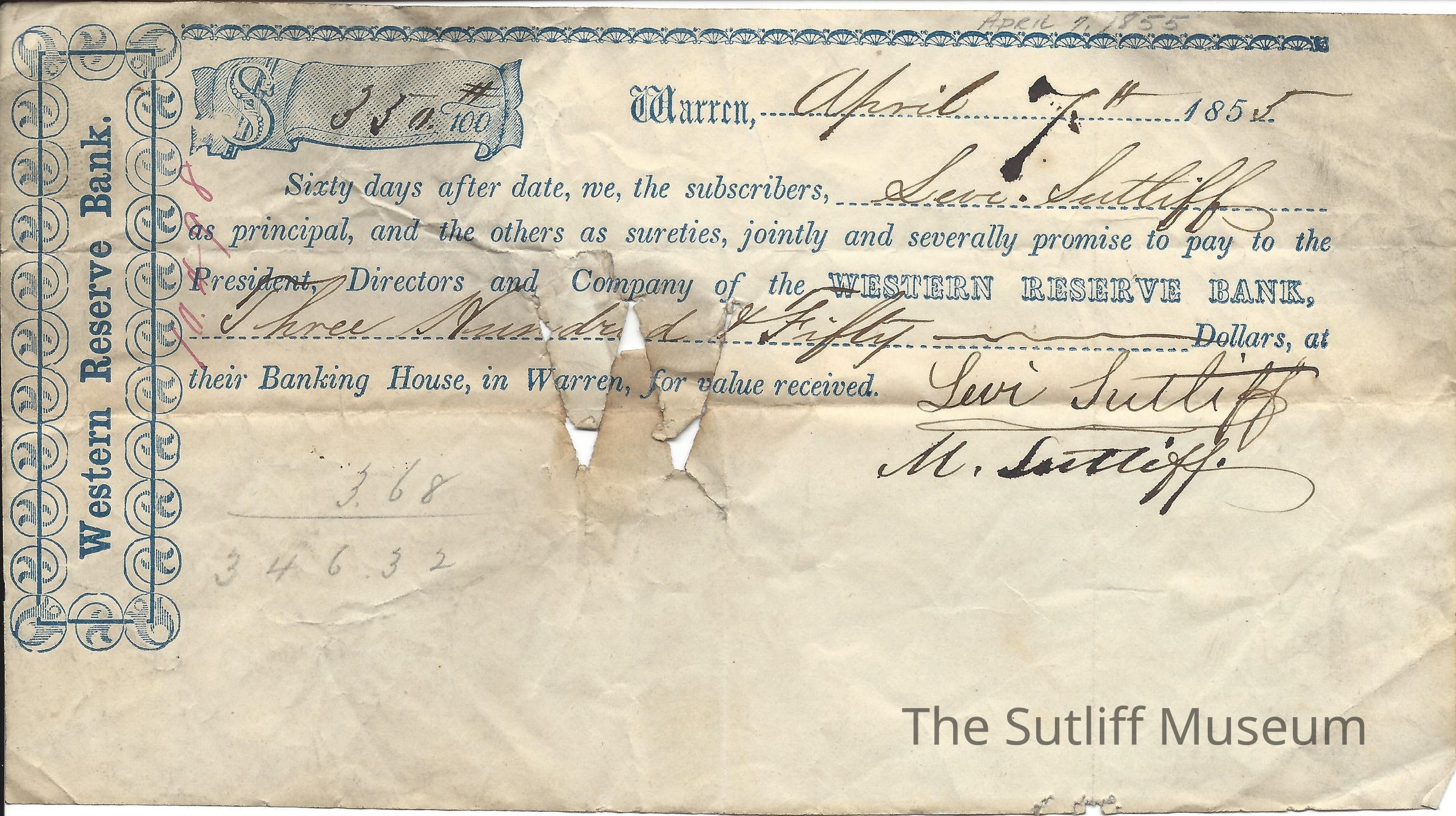 Agreement between the Western Reserve Bank and Levi Sutliff