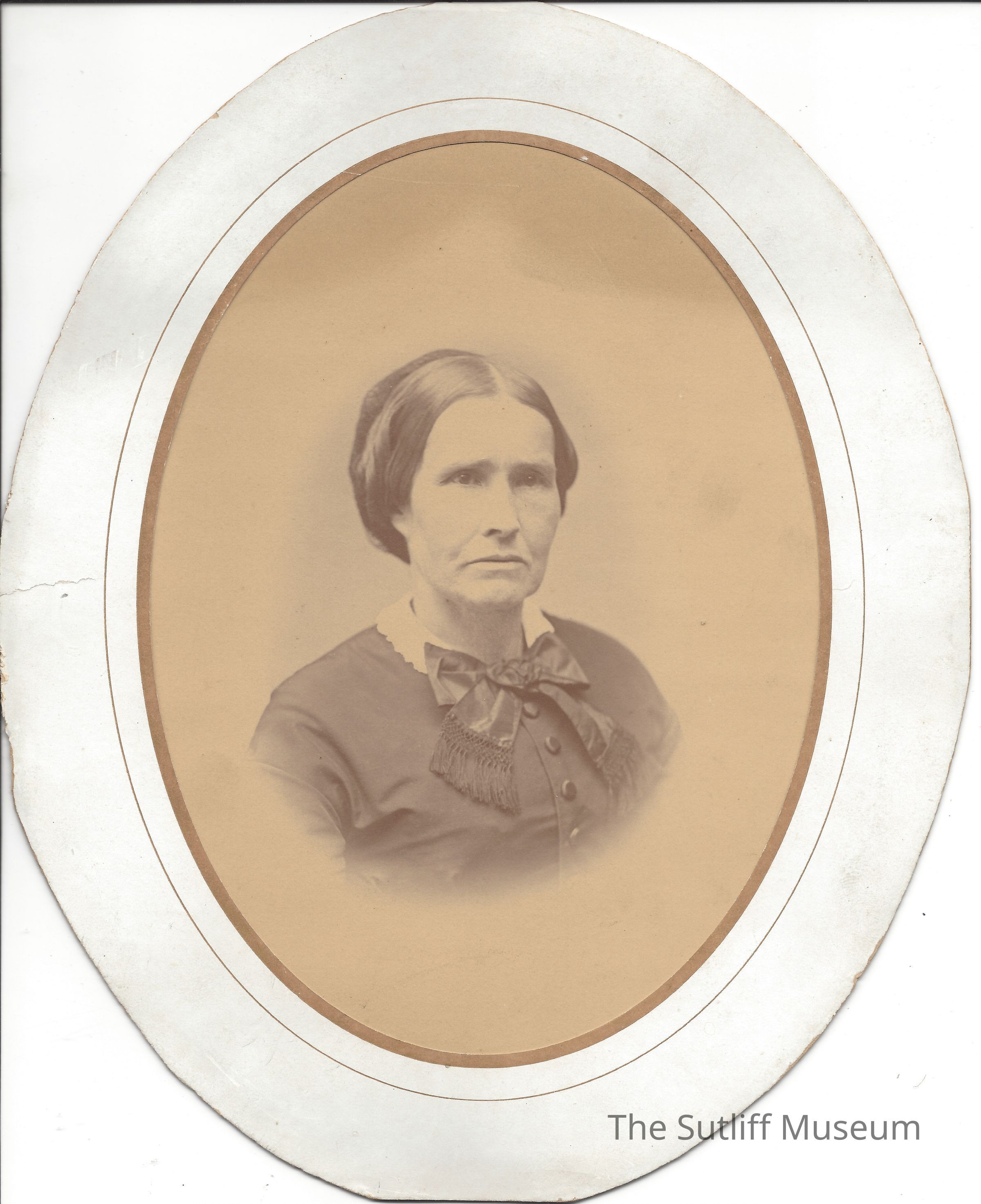Photograph of Alicia Tuttle Marvin, seated, facing to the right. Photo set in an oval matte. Companion to 2016.13.22Collection