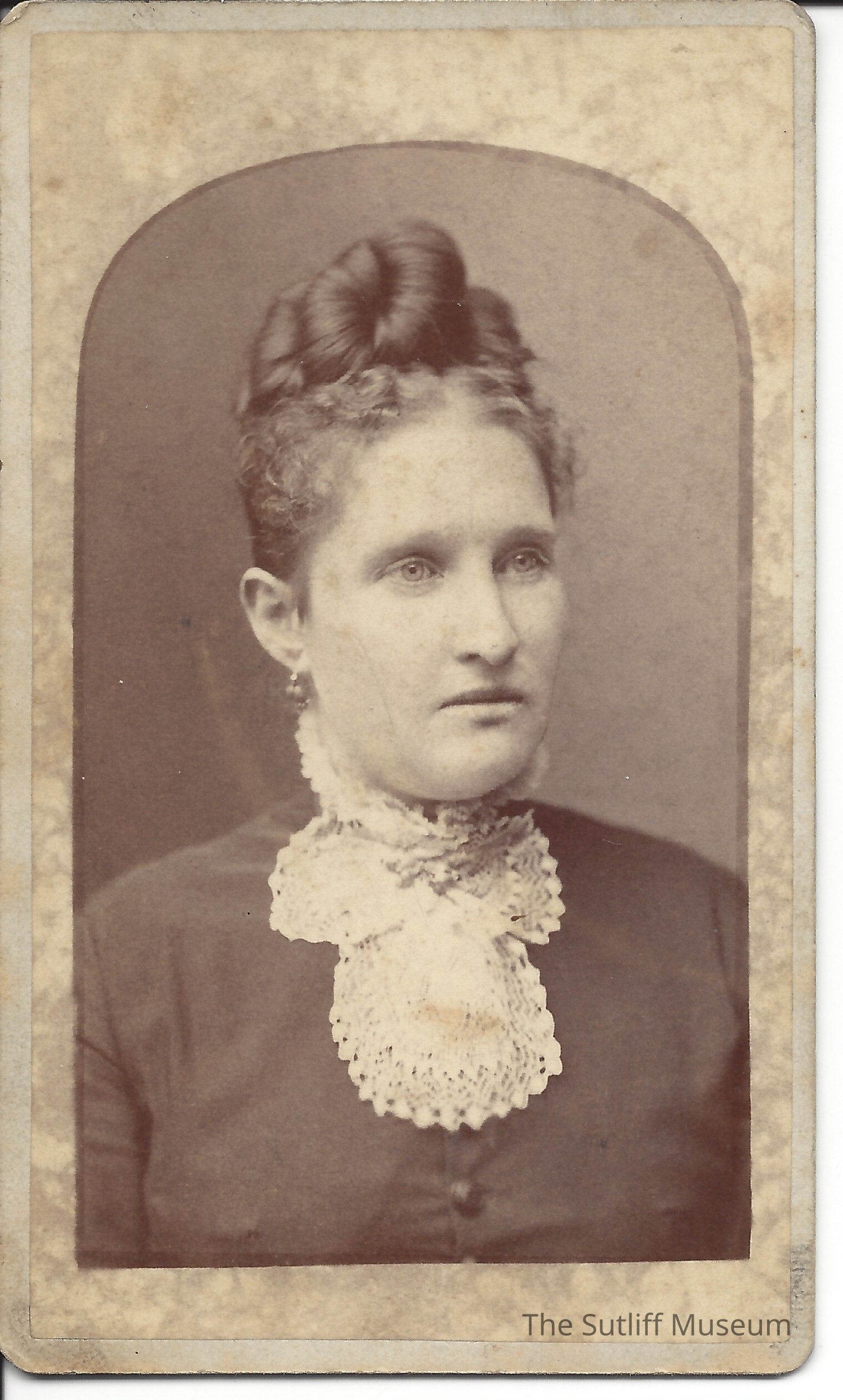 Photograph of Alicia Tuttle, head and shoulders. "Alicia Ardula Tuttle Marvin" written on the back in pencil and boxed in black pen.Collection