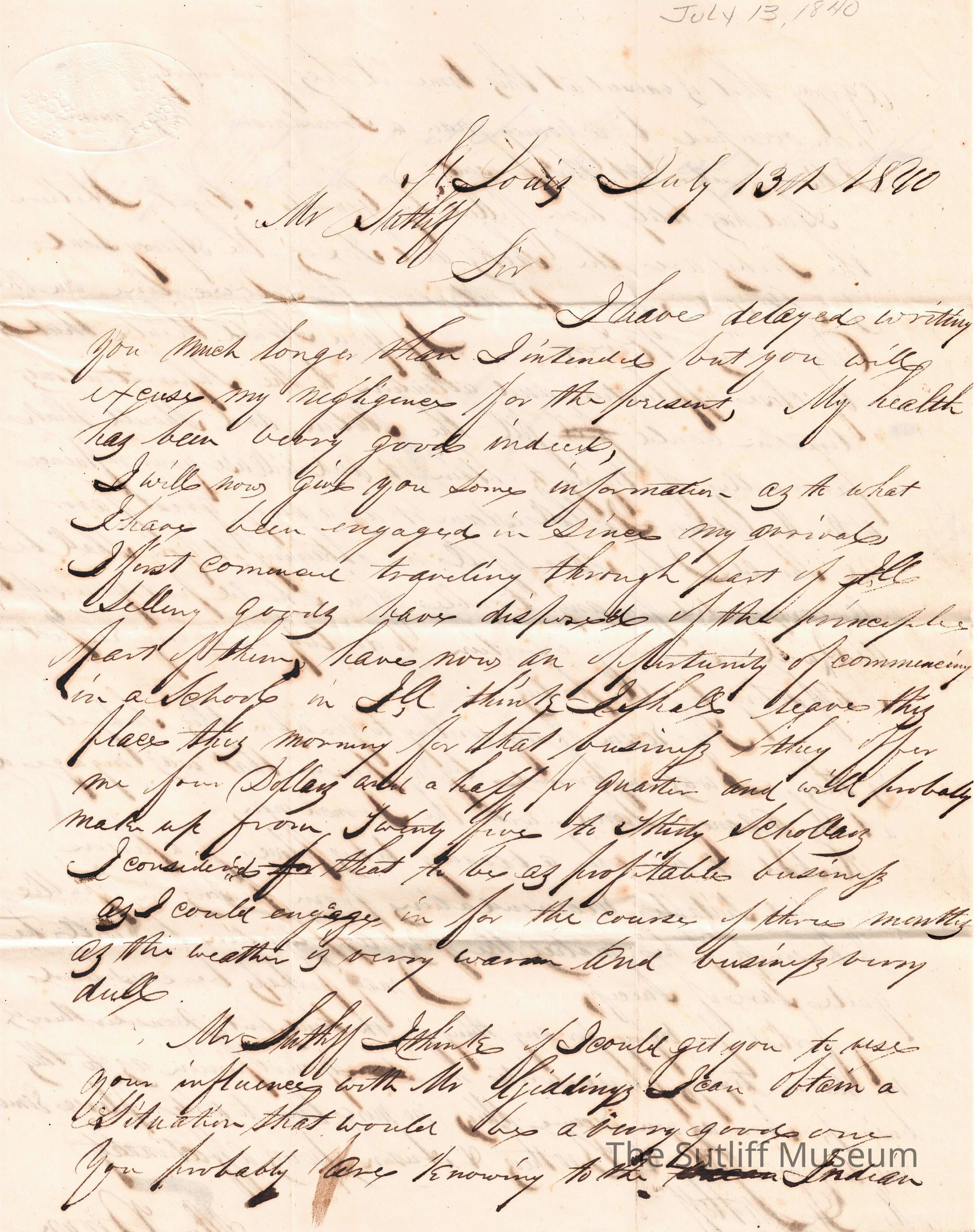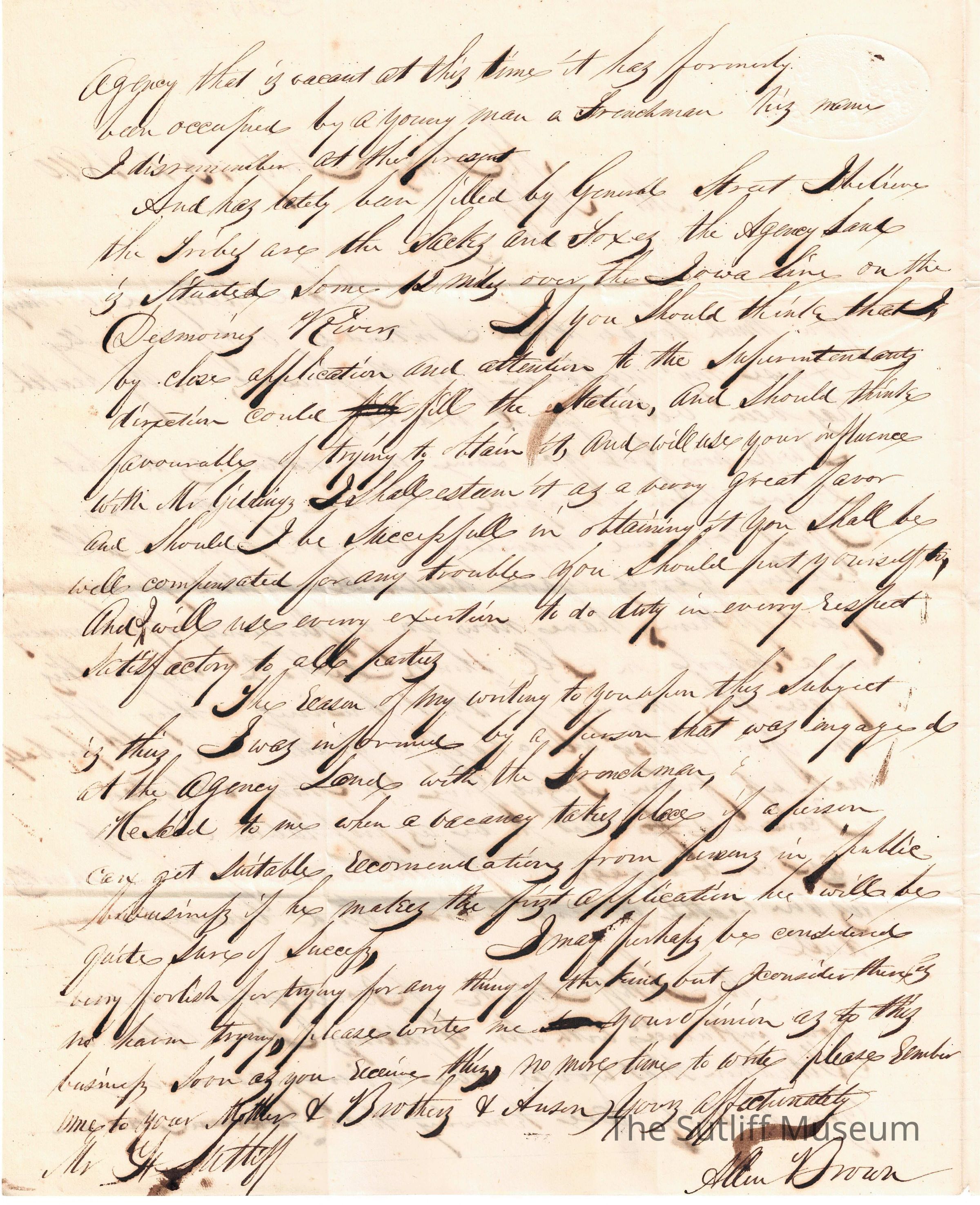 Letter from Allen Brown to Flavel Sutliff regarding his apologies for taking so long to write, and his engagements that have kept him so busy. He also asks Flavel to use his influence to give information to J.R. Giddings and to give his love to Flavel's Mother and brothers.Collection