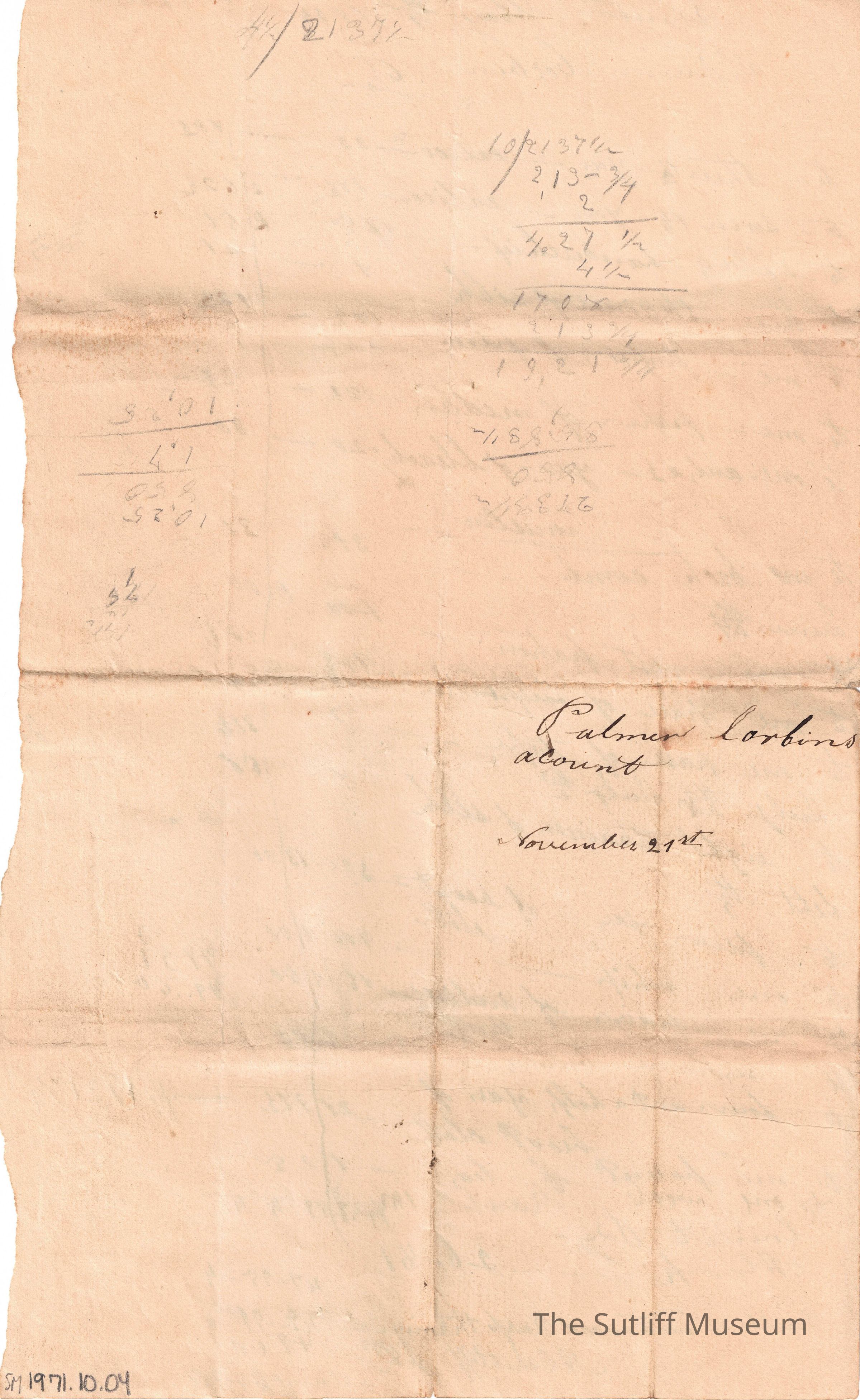 An account of goods going between Allen Curtis Sutliff and Palmor Corbins. Marks of prices, payment, goods. Acts as a receipt.Relationships