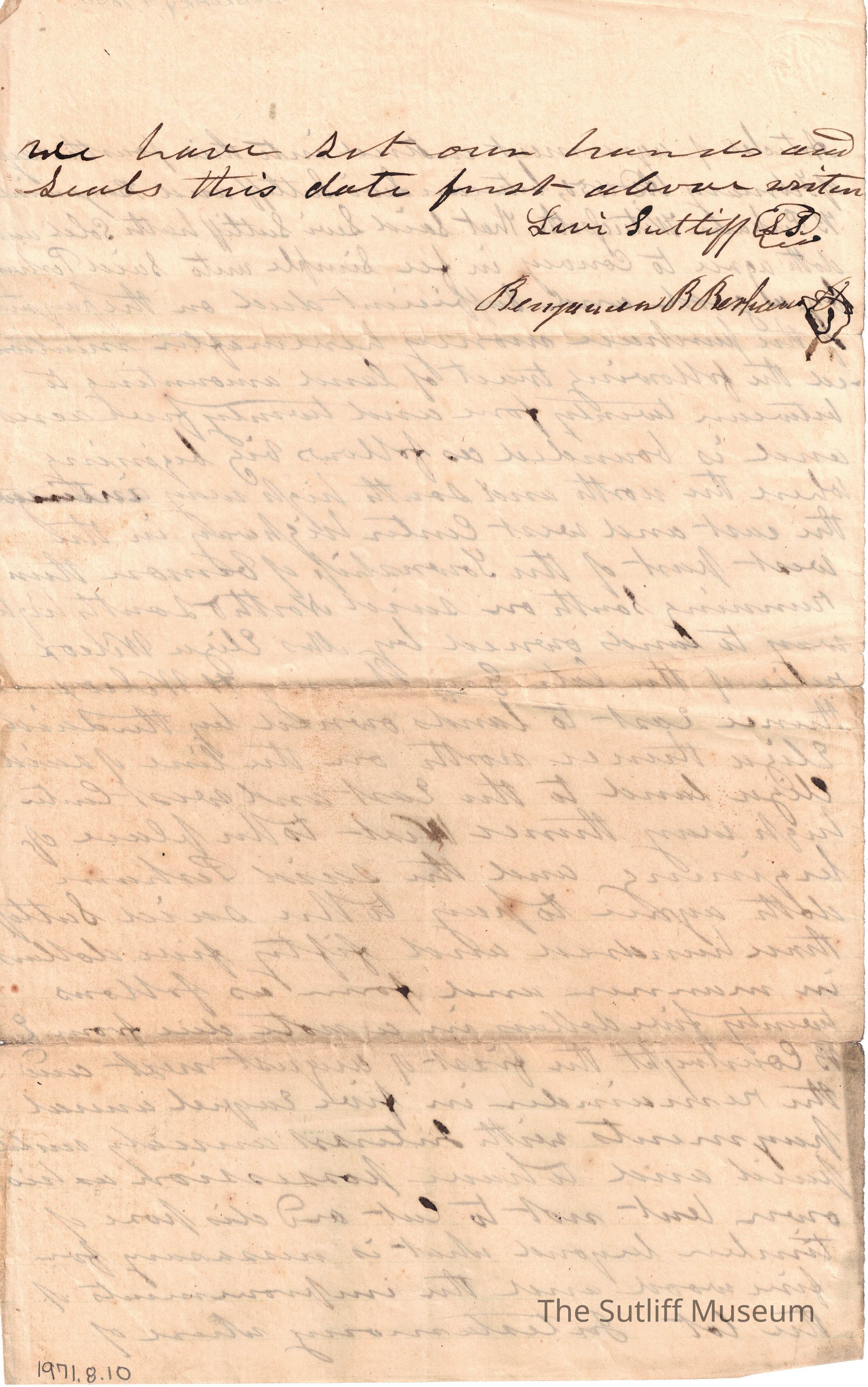 An agreement between [Benjamin B. Perham] to Levi Sutliff regarding the transfer of land.Relationships