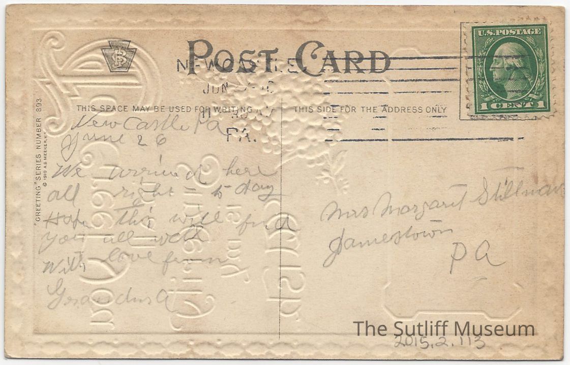 Art, Artifacts, Correspondence/Postcard, Cultural Activities, Domestic Life, Postal Services, People, Social & Personal Activity, Kinsman, Ohio