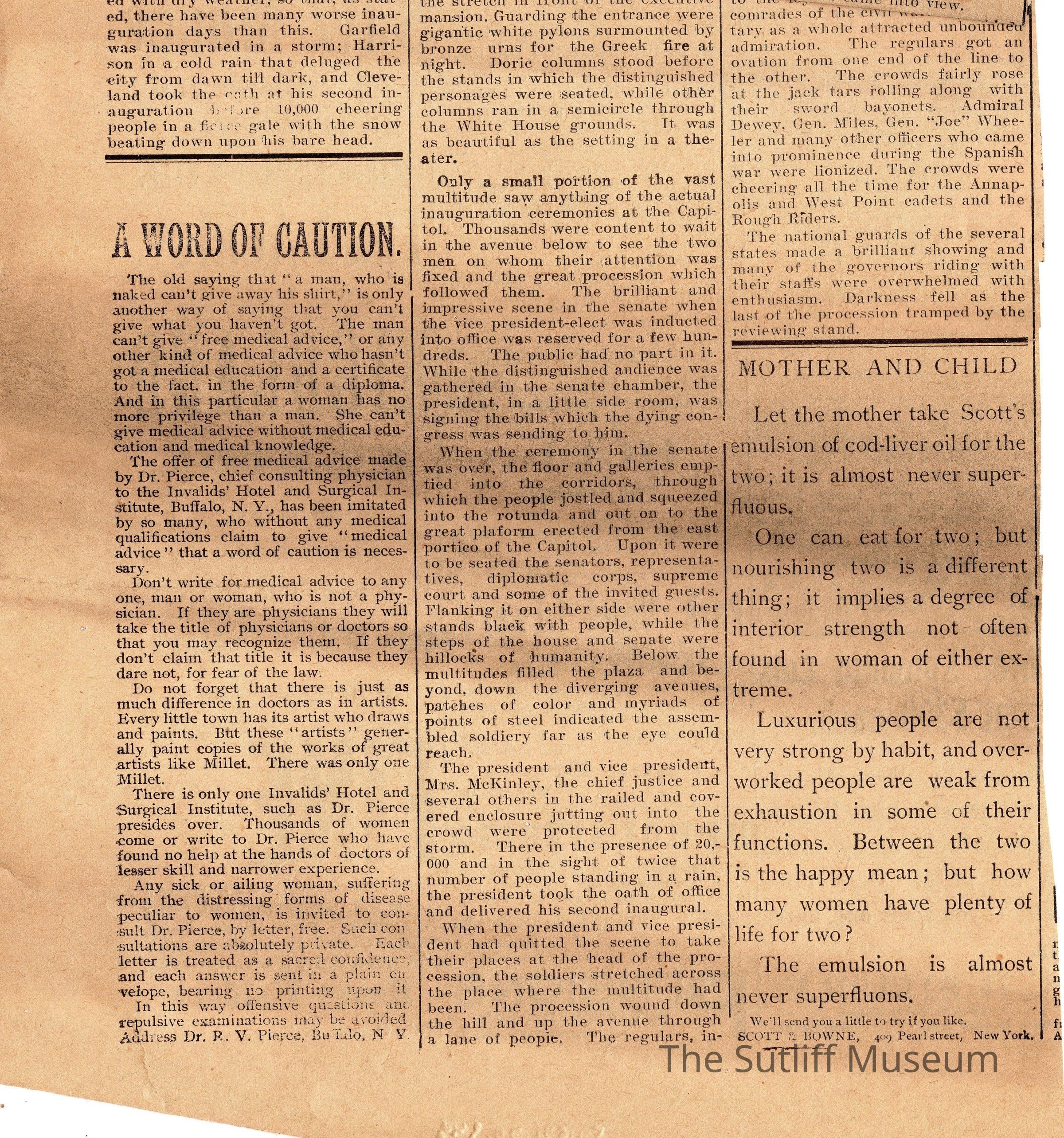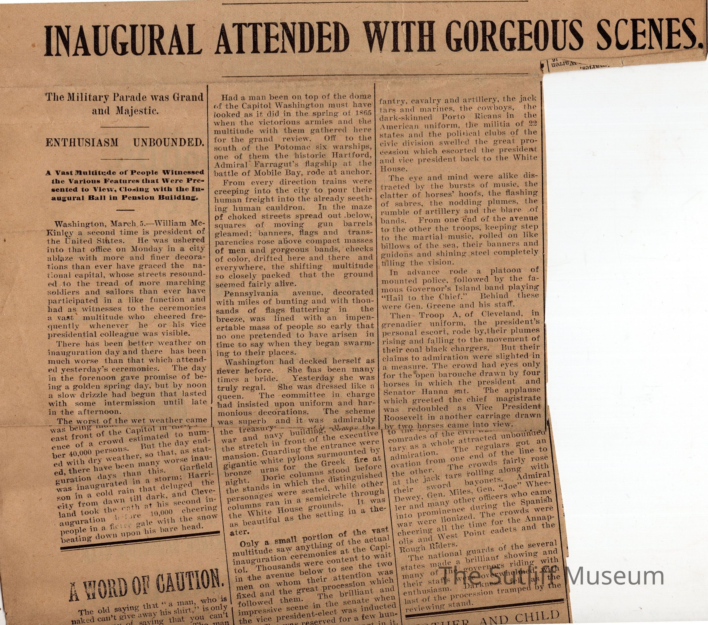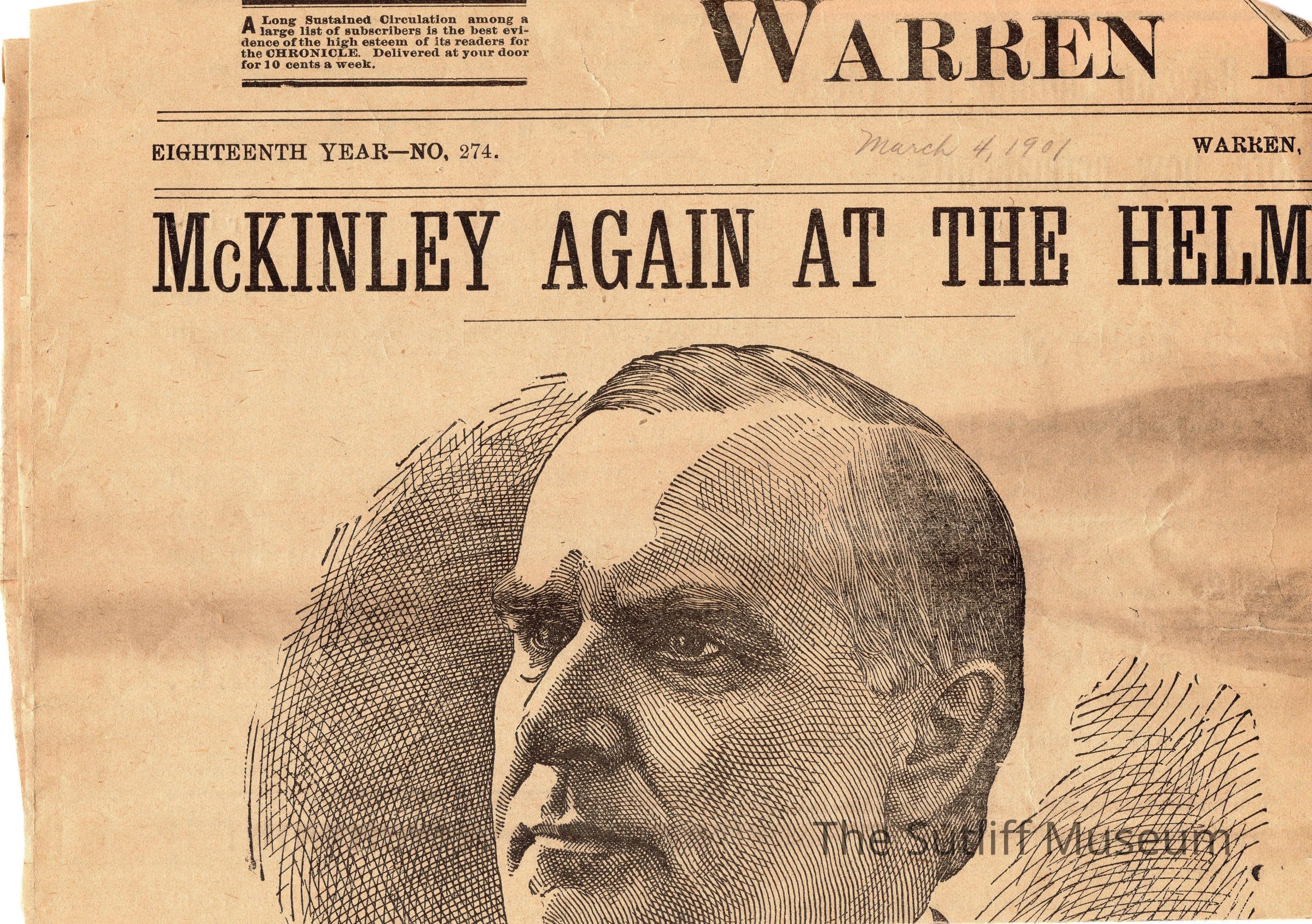 Newspaper clipping with an article titled "McKinley Again at the Helm"Collection