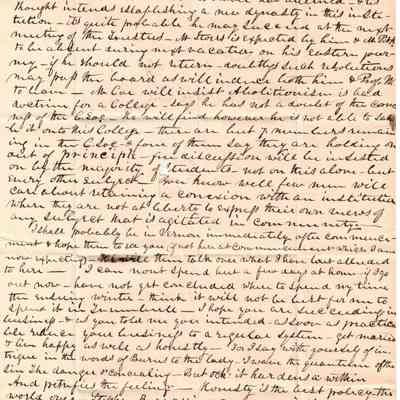 A letter from Milton Sutliff to Levi Sutliff regarding Mr. Coe's views against abolitionism, that Milton will be in Vernon shortly meaning they can talk in more detail, and other small updates.Collection