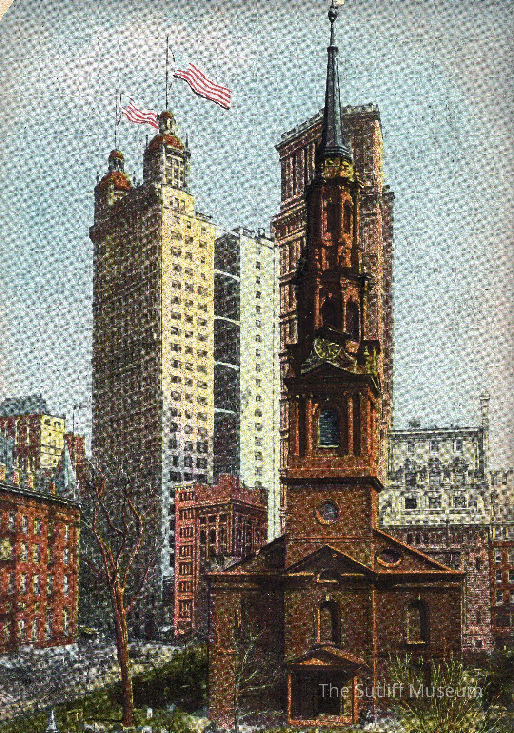 A postcard of St. Paul's Church, Broadway, in New York.Collection
