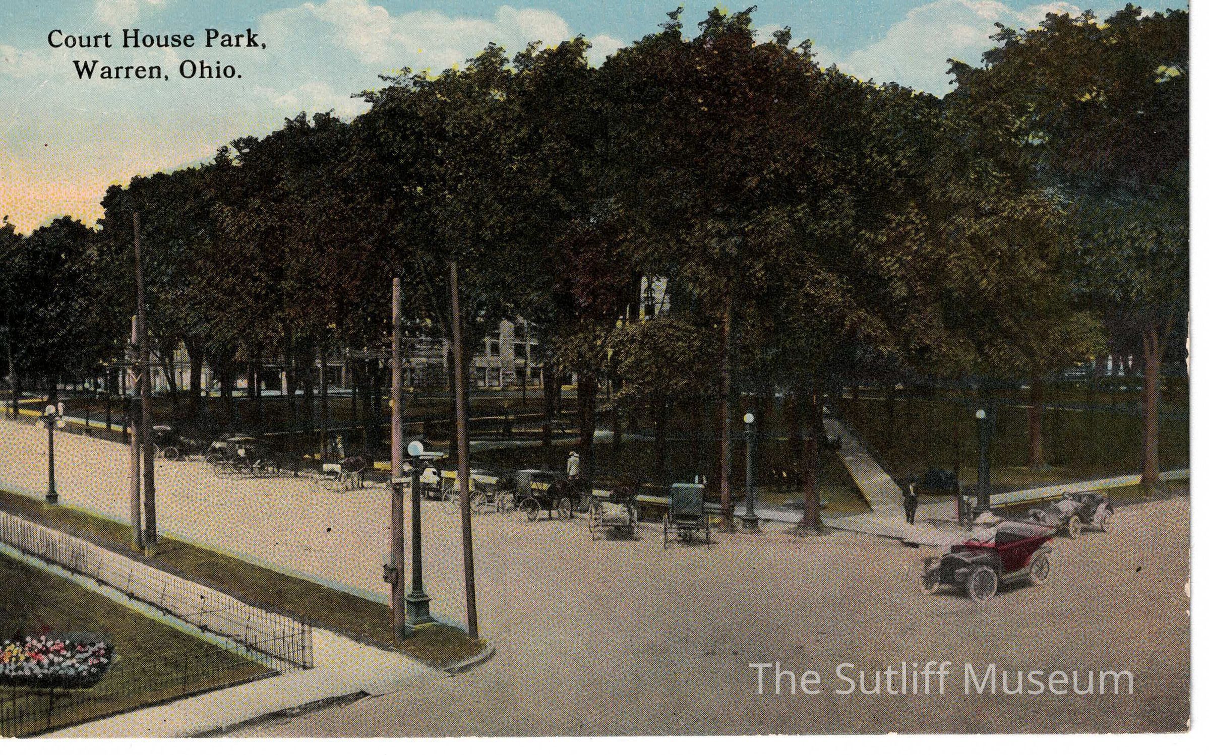 Architecture, Art, Artifacts, Correspondence/Postcard, Cultural Activities, Domestic Life, People, Postal Services, Recreation, Social & Personal Activity, Parks, Warren, Ohio, Court House Park
