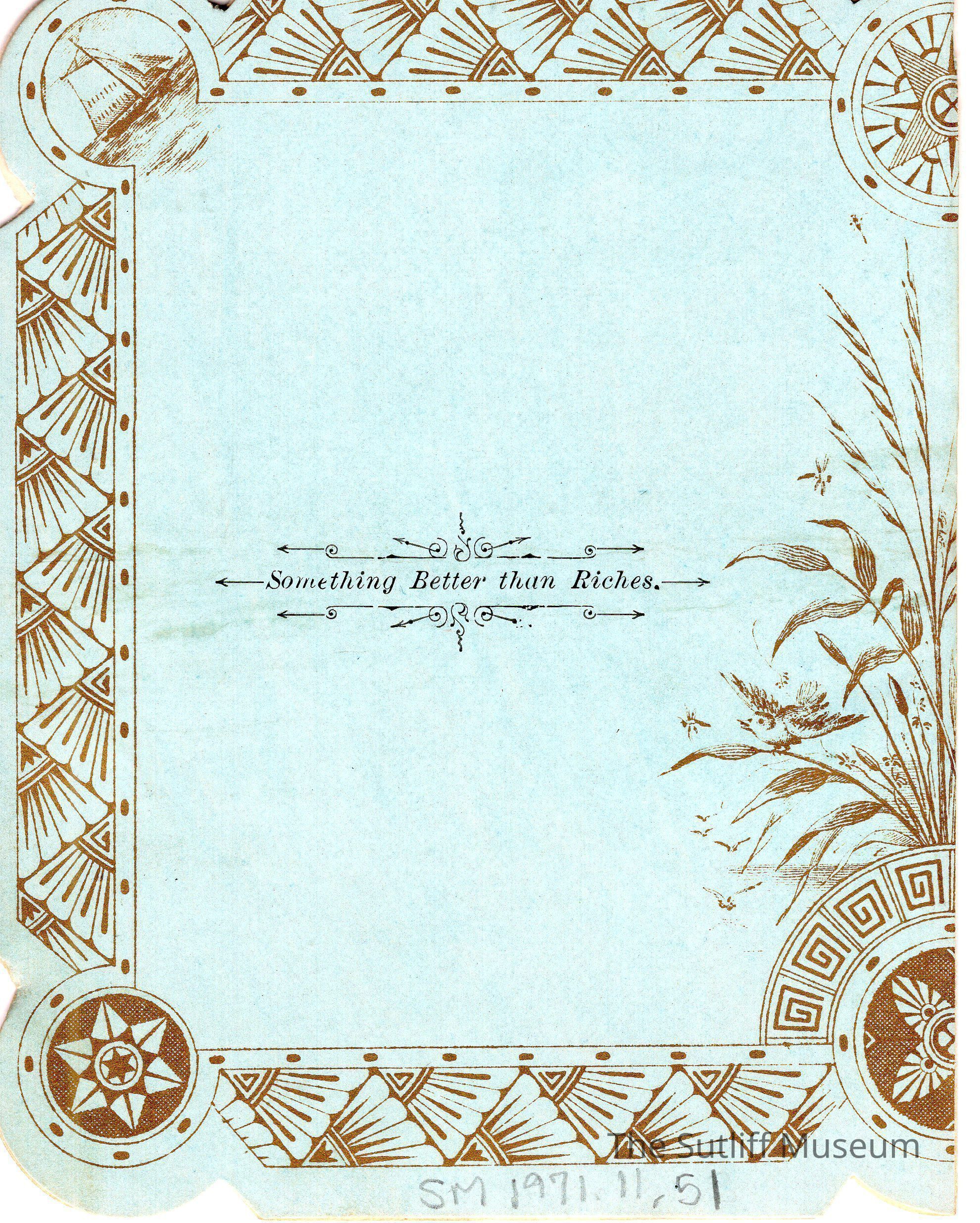 Inside lists the speeches and musical entertainment for the night, including an essay by Lydia B. Sutliff. This speech is SM1971.11.52.