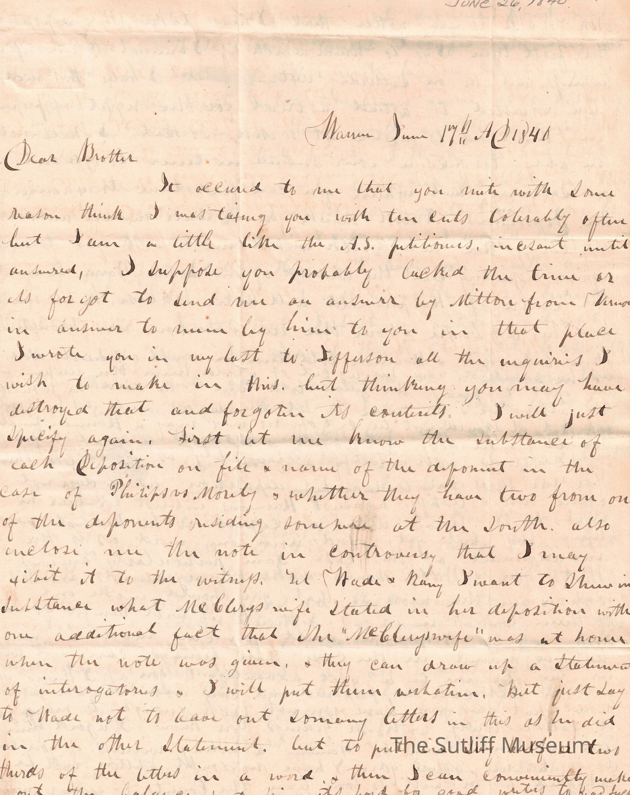 1840s, Legal, Correspondence Between Sutliffs, Money, PoliticsDescription