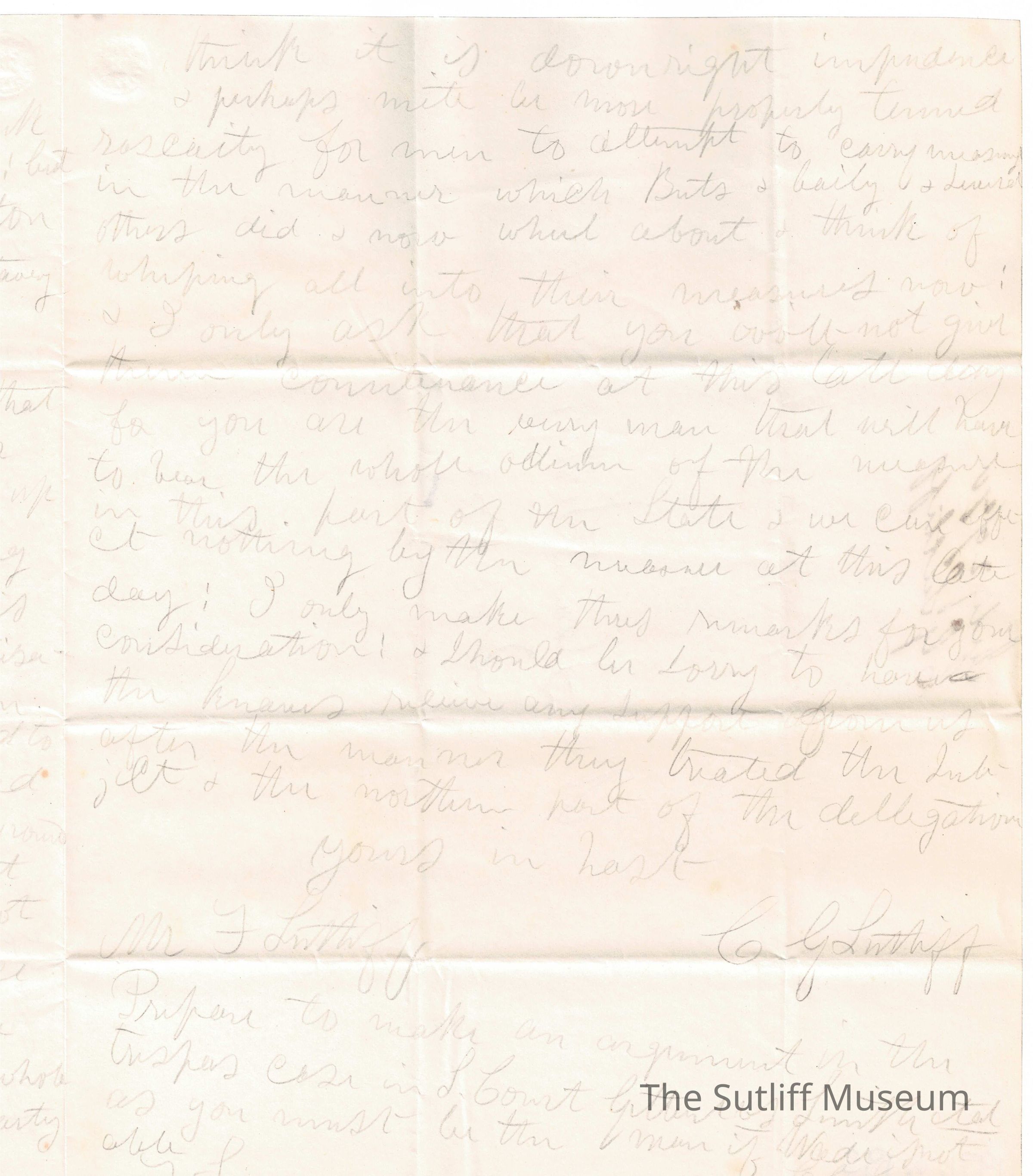 1840s, Correspondence Between Sutliffs, Legal, PoliticsDescription