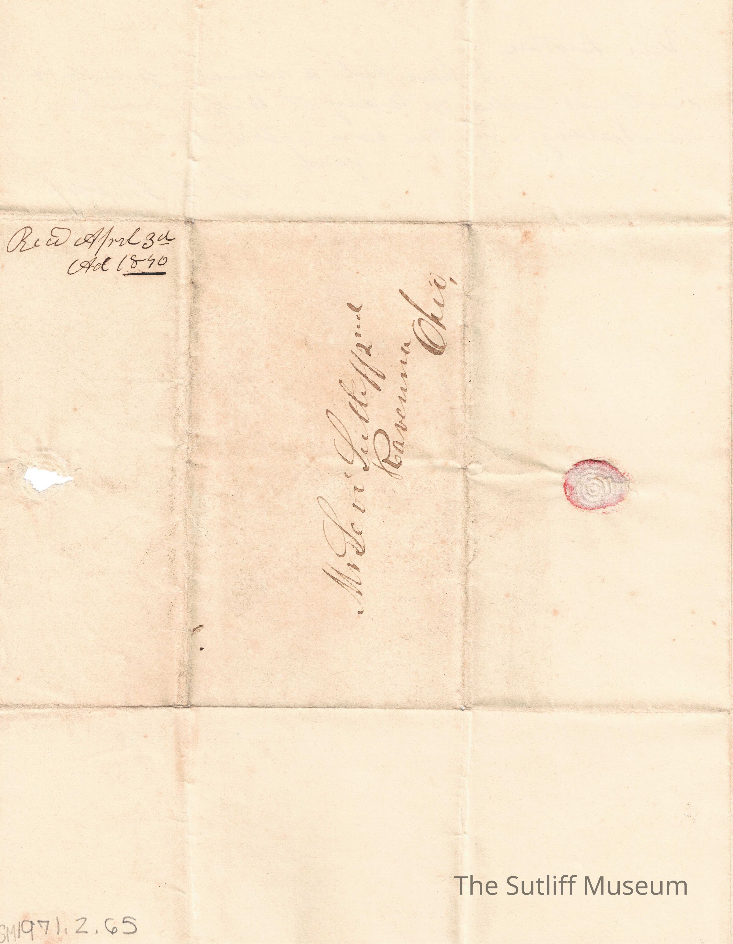 1840s, Business, Abolitionist/Anit-Slavery Movement, Correspondence Between Sutliffs, Family, Legal, PoliticsDescription