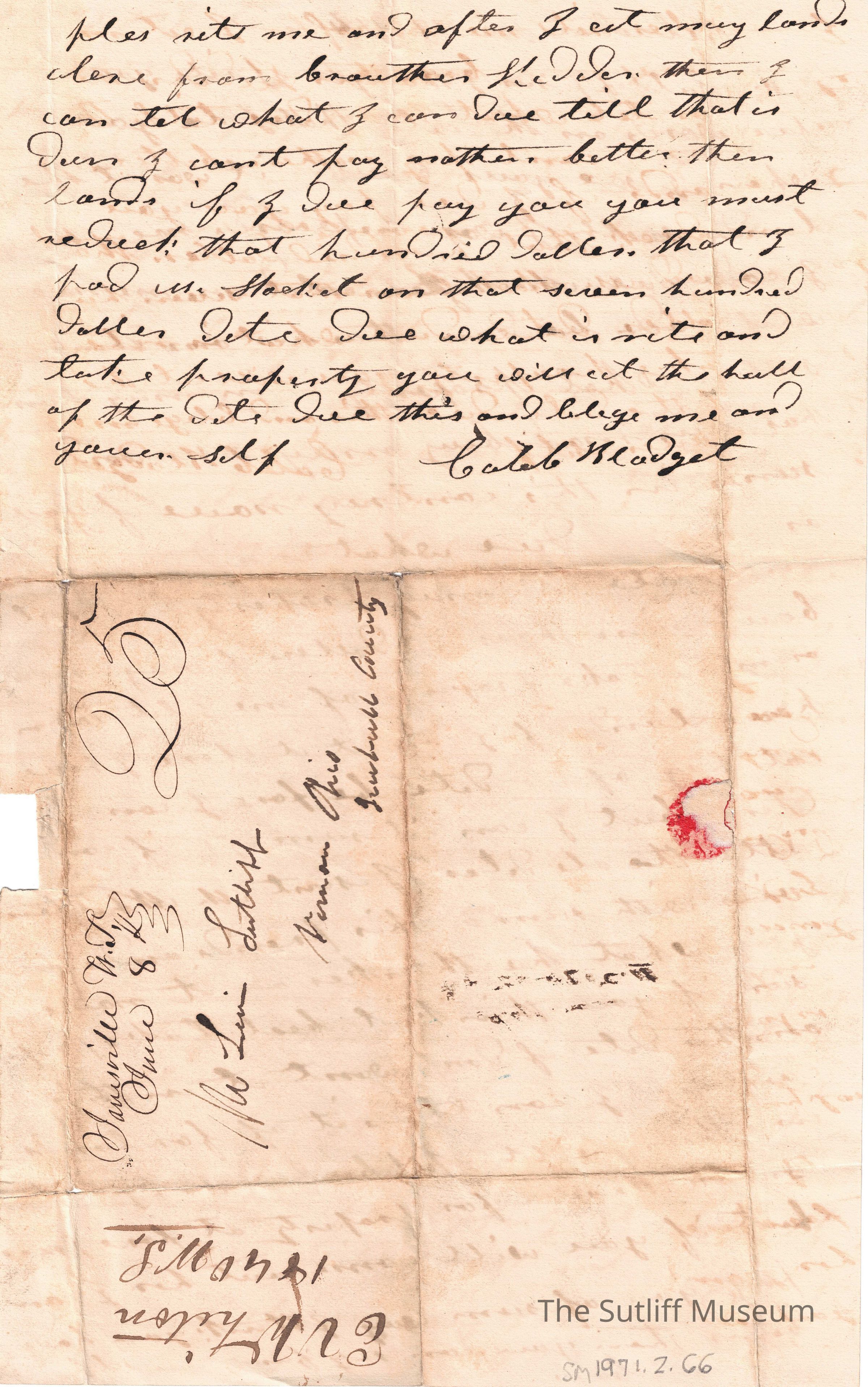 Caleb Blodget wrote Levi about the possibility of trading in his lands if they did not sell in the area. Willing to pay Levi for his help.Collection