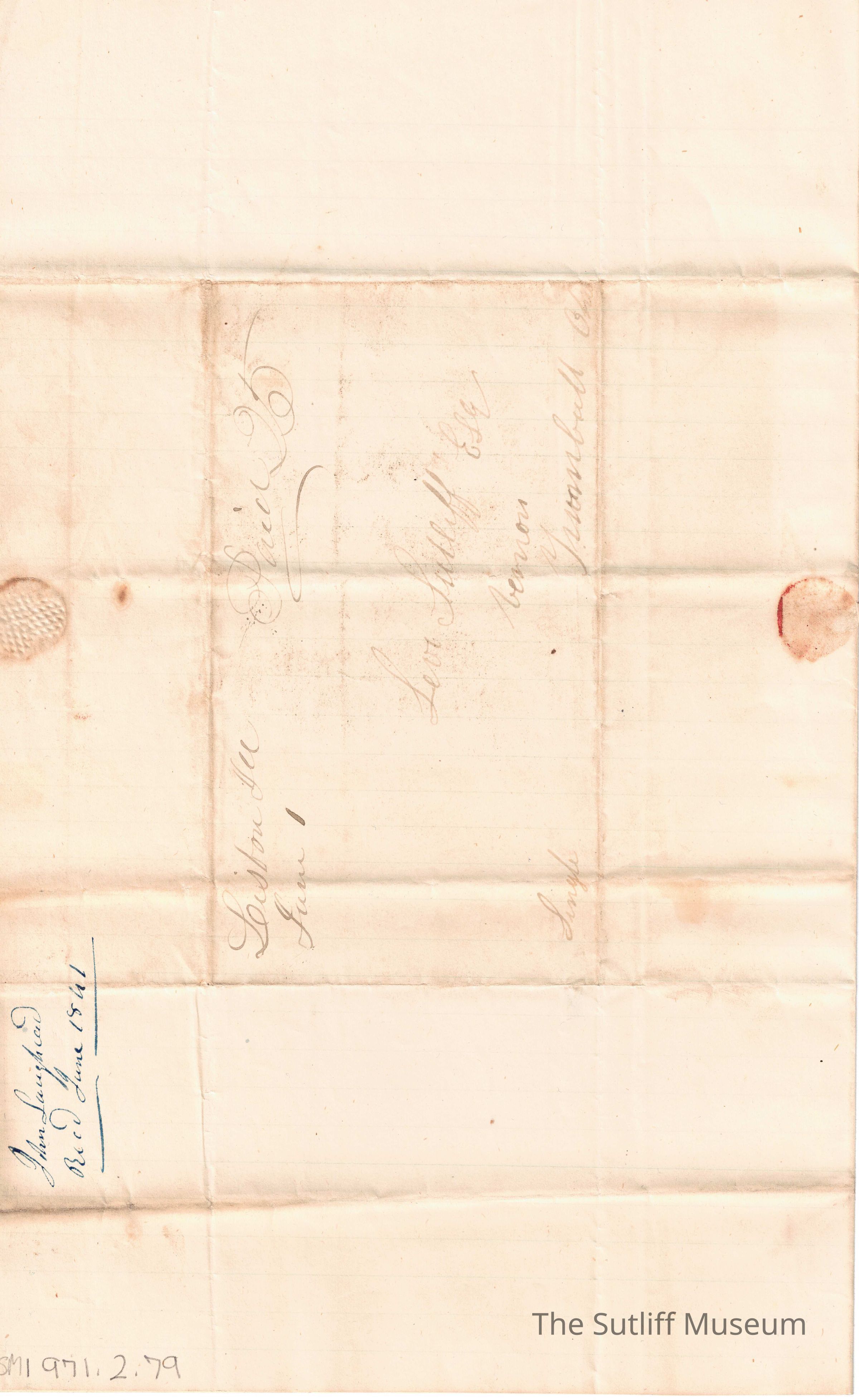 John Laughhead writes to Levi Sutliff explaining he does not recollect giving money to M & E. Apologizes for the delay because he is 10 miles away from the post office and cannot get there often.Collection