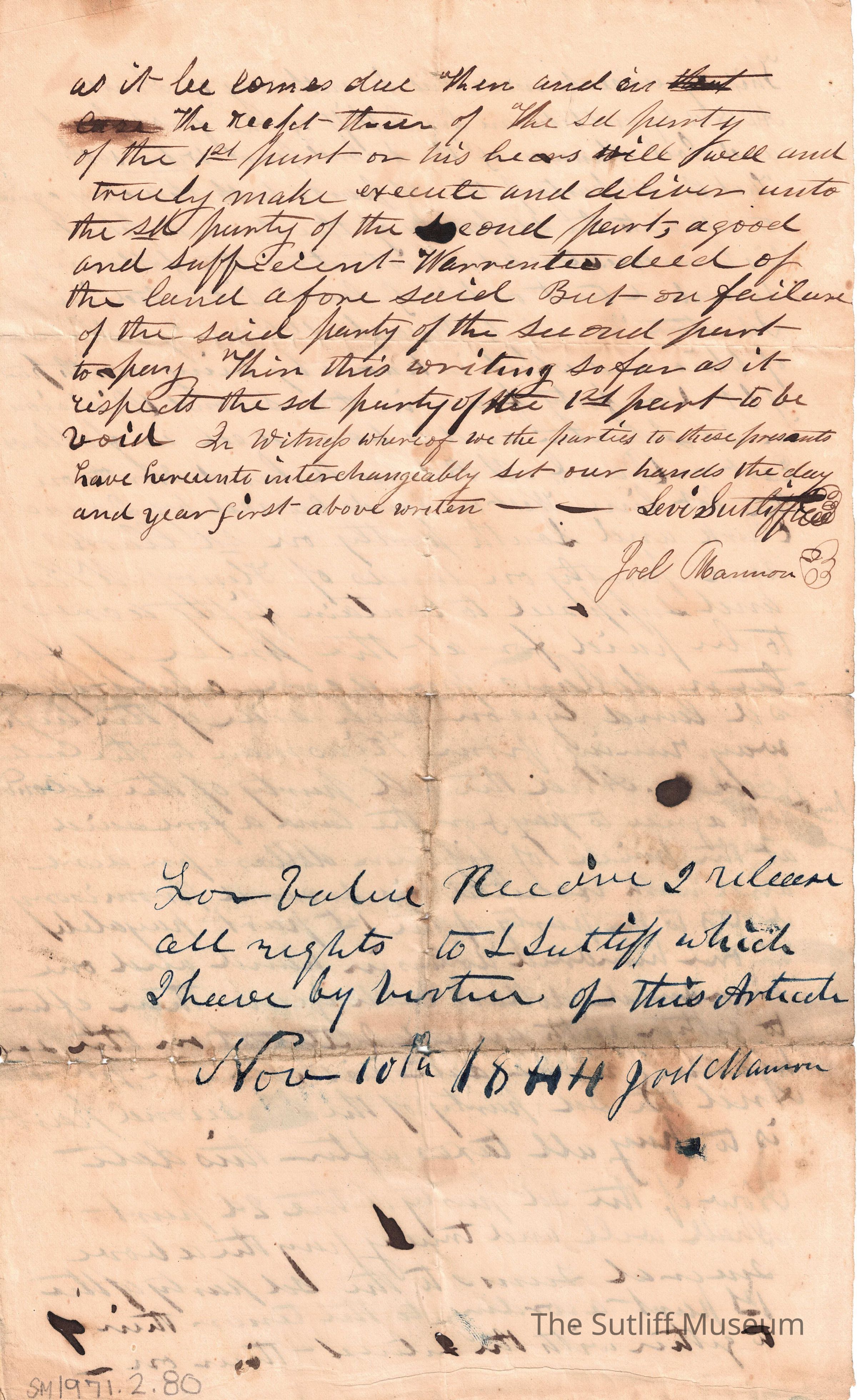 Contract Between Levi Sutliff & Joel MannonEntry/Object ID