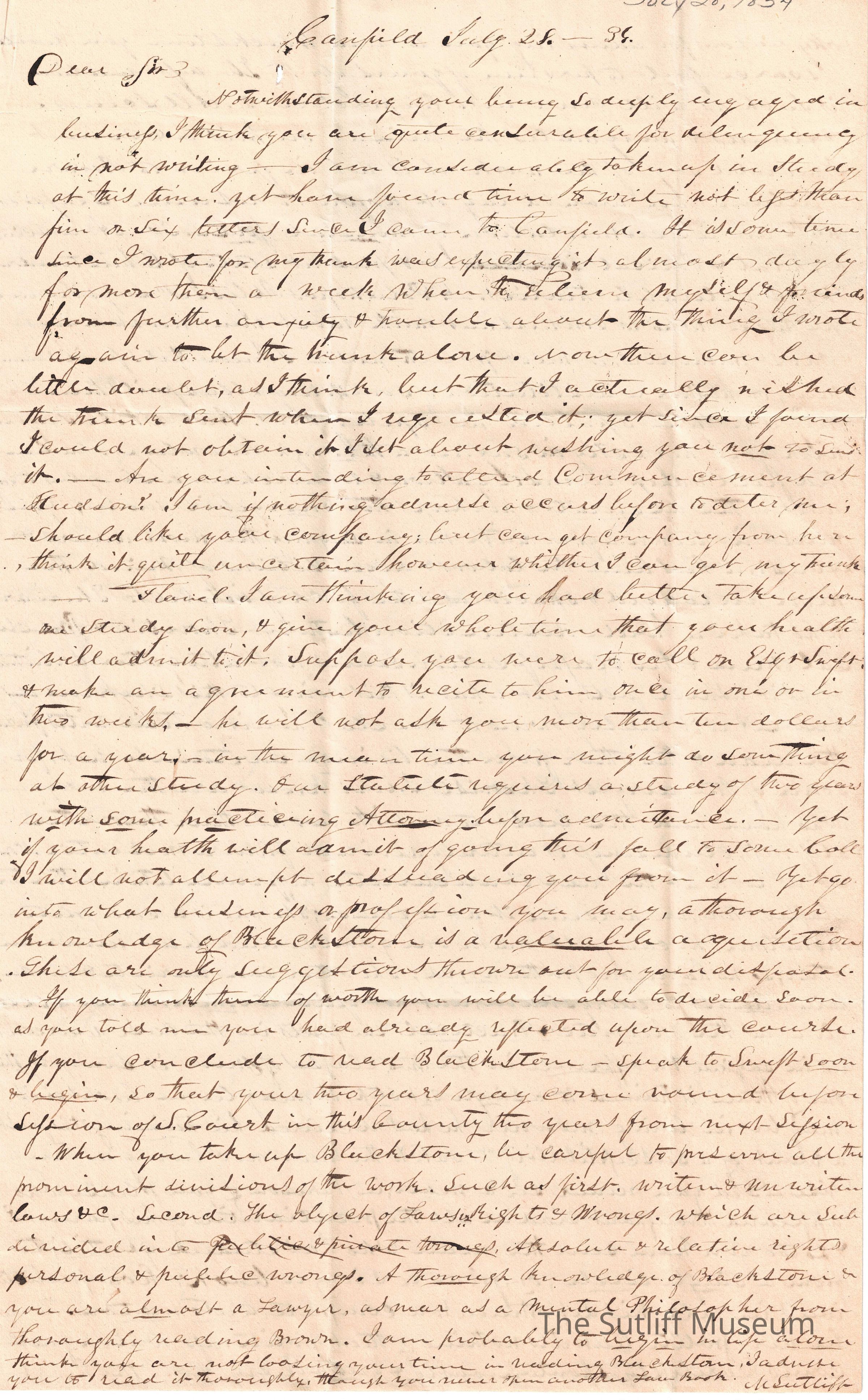 Milton Sutliff To Flavel Sutliff Jul 28, 1834Entry/Object ID
