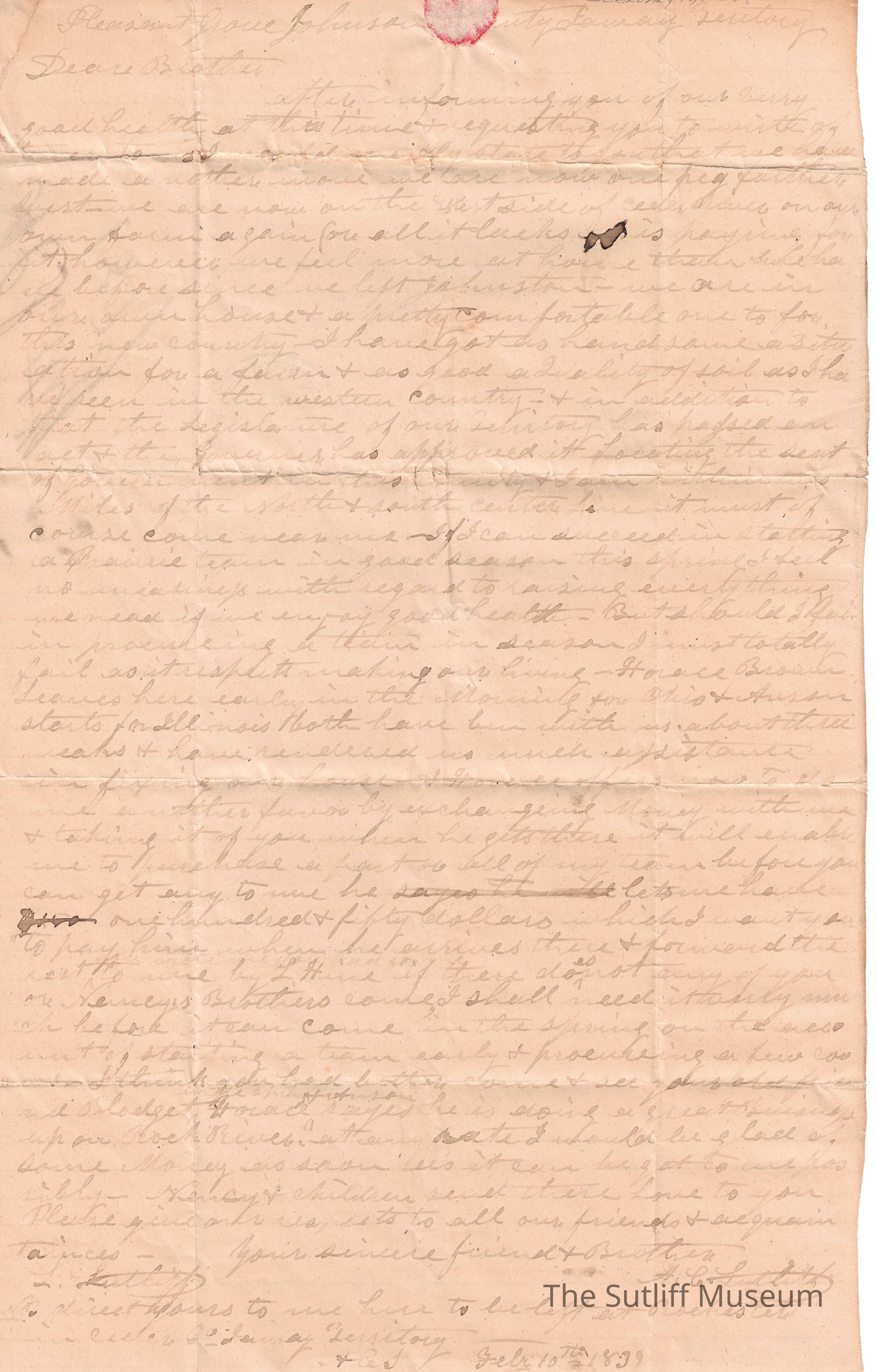Allen Curtis writes to Levi saying that he, his wife, Nancy, and their children moved a "peg West." He writes that they are all in good health, and will consider himself successful in his new farm if he is able to start a "Prairie team" in the spring season (a team of cows). If not, he writes of his worry about failing and not making their living. AC also writes asking Levi to giveCollection