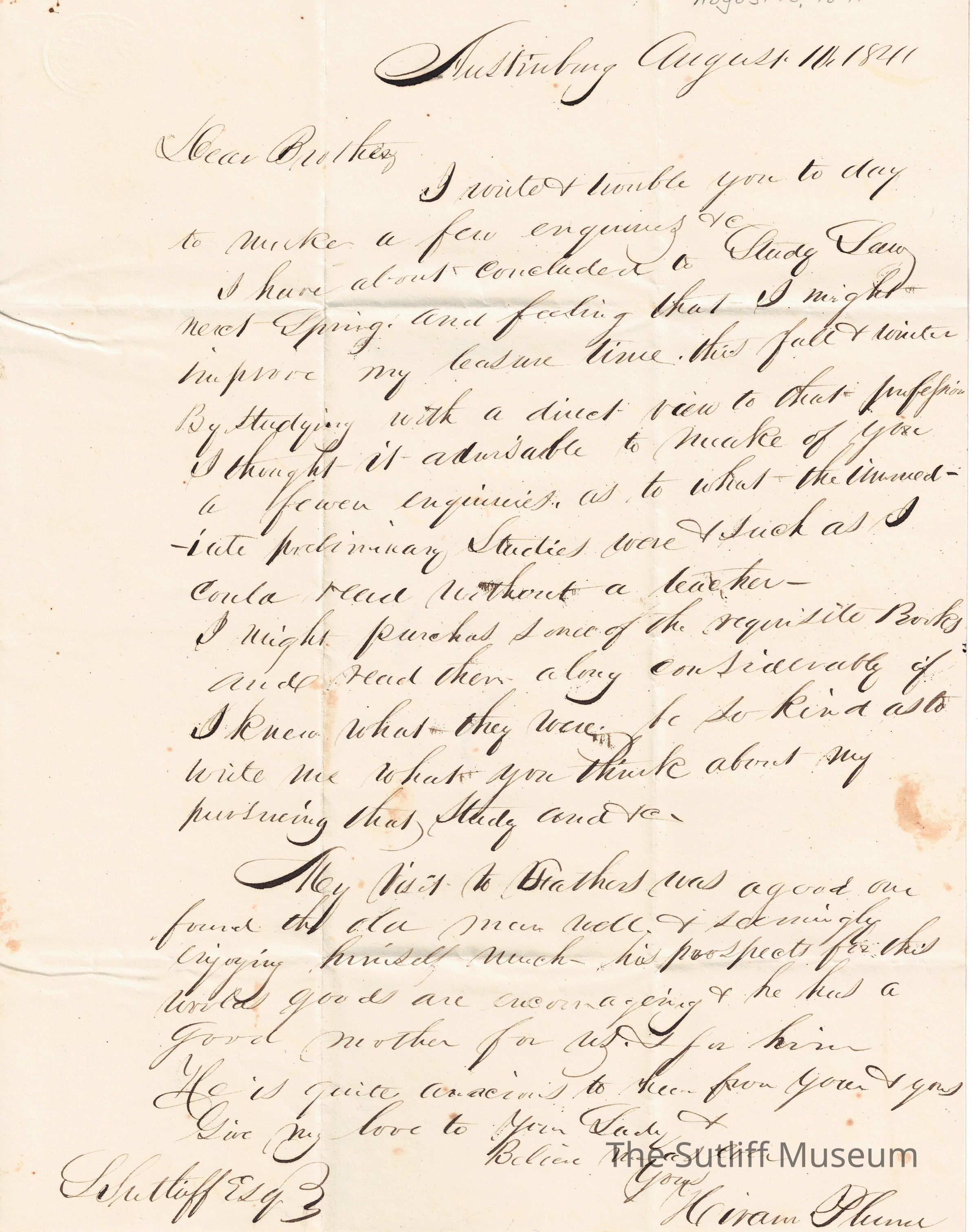 1840s, Correspondence Between Sutliffs, Family, Legal, SchoolDescription